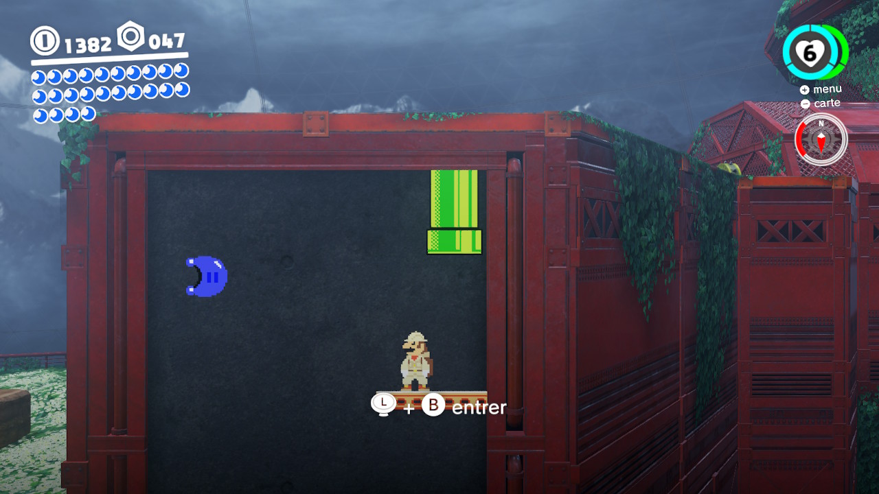 Le passage à trouve est juste avant le champ de fleur du sommet de l’édifice principal, le long de la façade est. Sautez par dessus la barrière et contrôlez votre chute pour y accéder. Un tuyau Warp se trouvera sur votre droite.