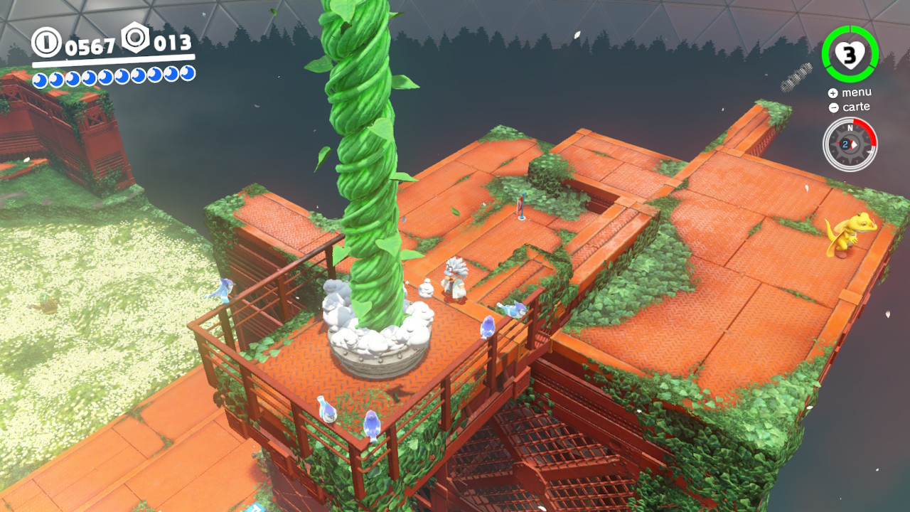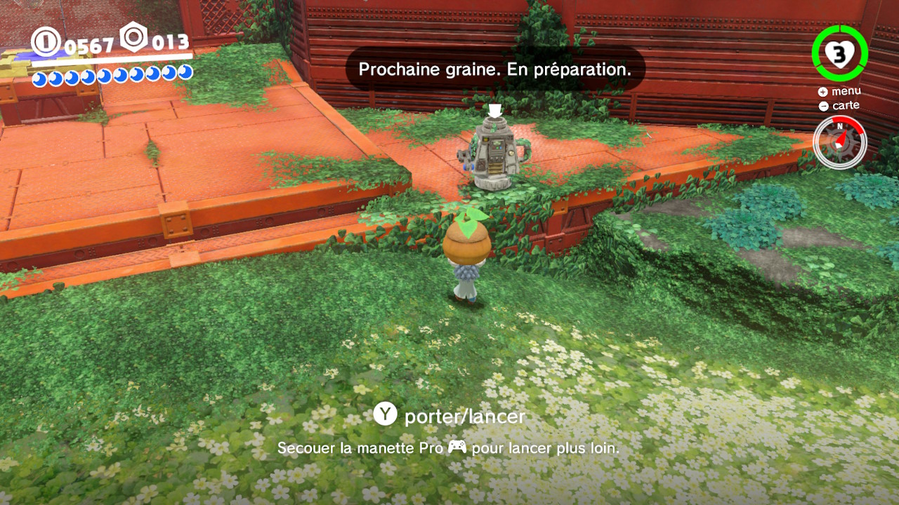 Cette lune se récupère en plusieurs étapes. Tout d’abord, récupérez une graine au sommet de l’édifice principal, auprès du robot-arroseur au champ de fleur.