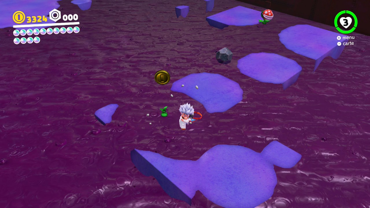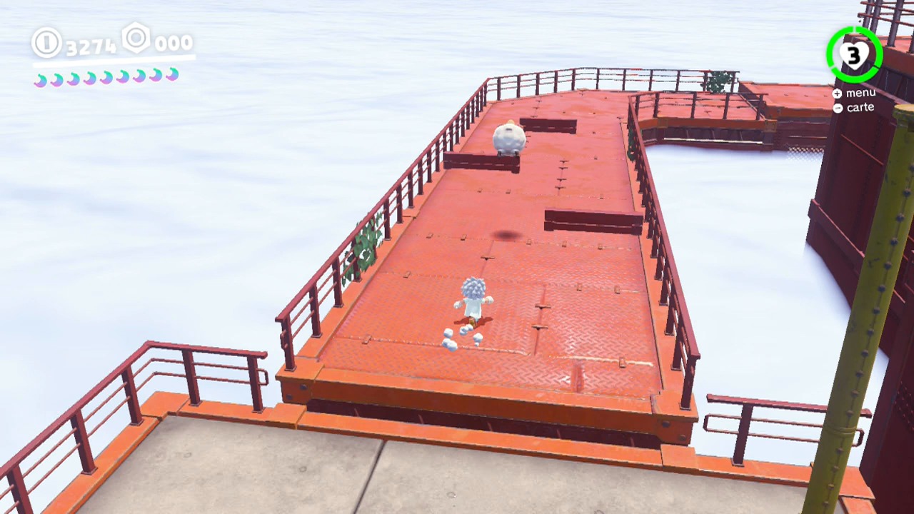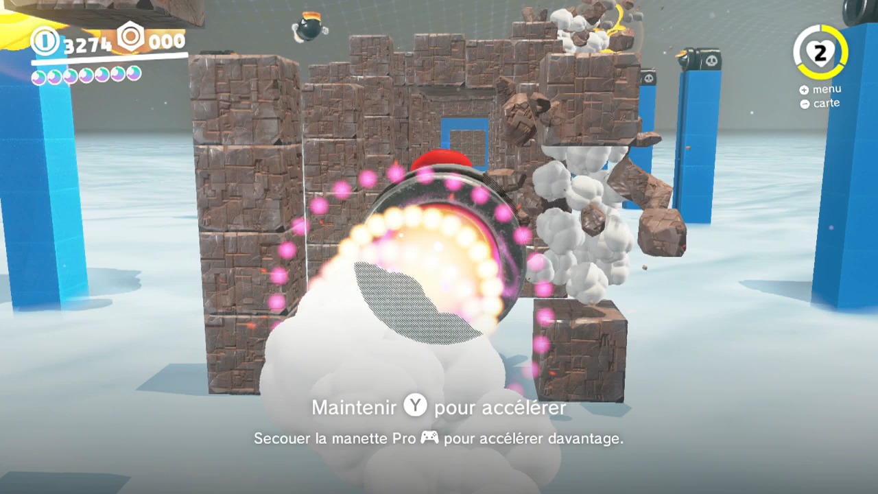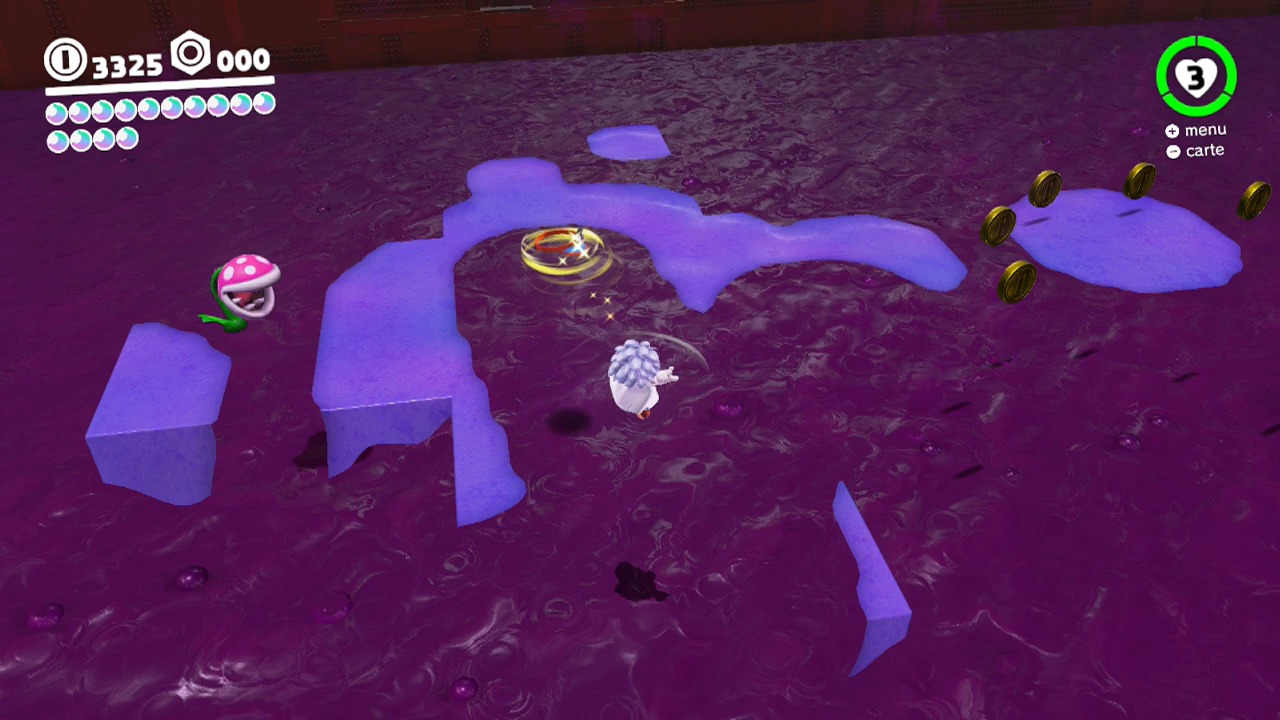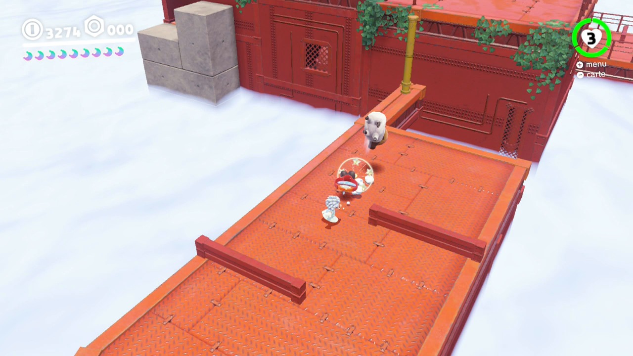 Quand vous le touchez avec Cappy, vous le catapulterez dans la direction opposée, ce qui est requis pour le faire passer le vide ou monter à la plateforme supérieure. Attention à ne pas le faire tomber du niveau.