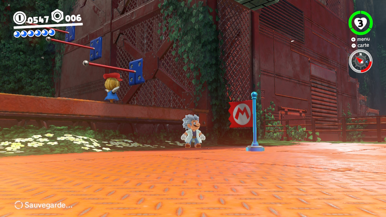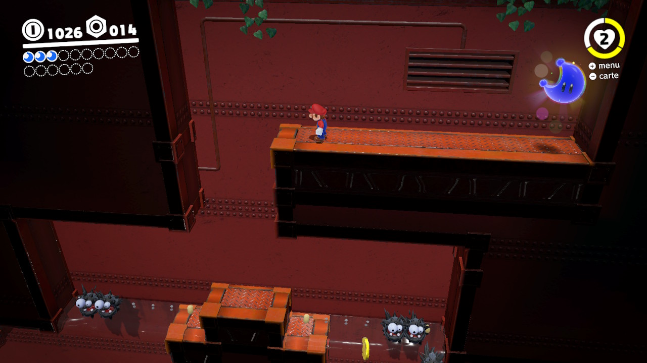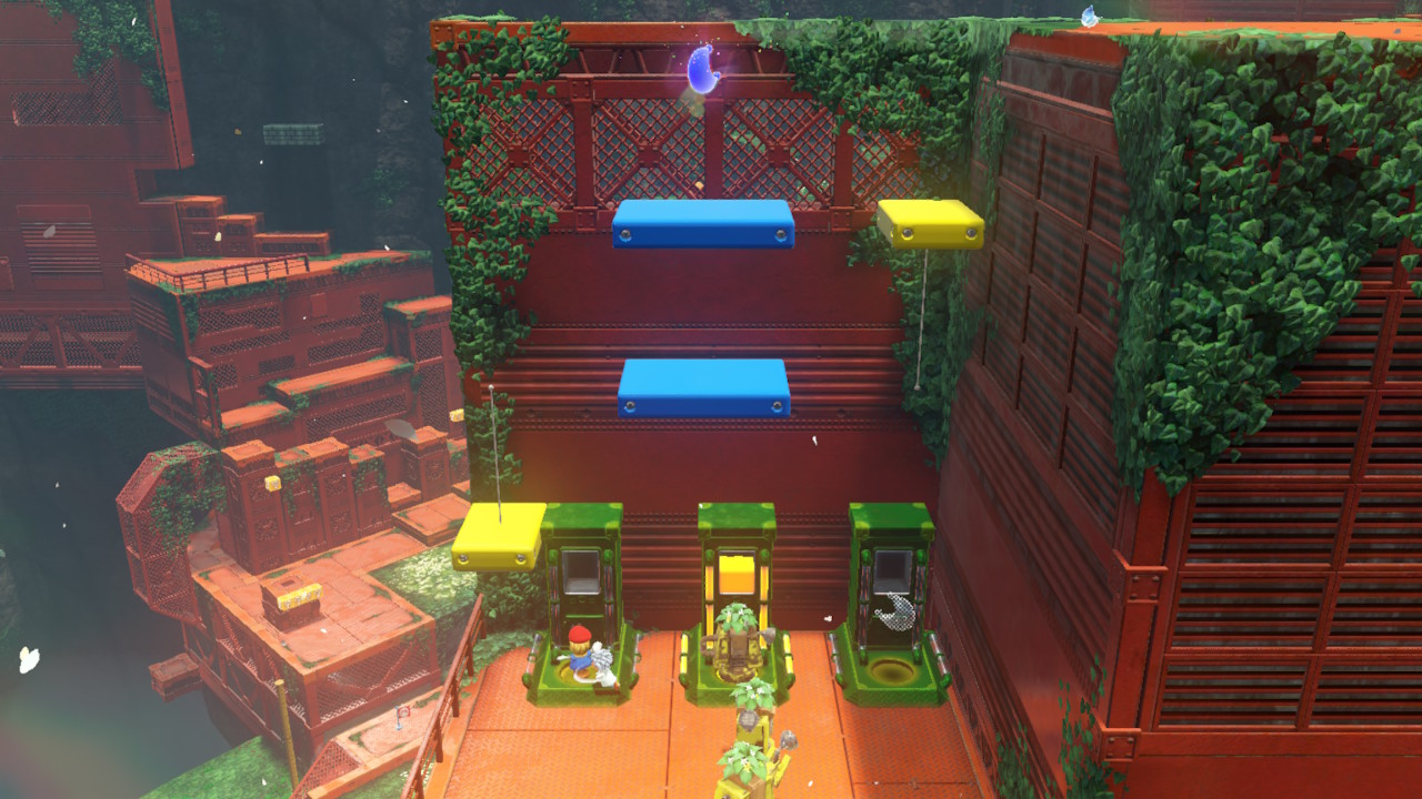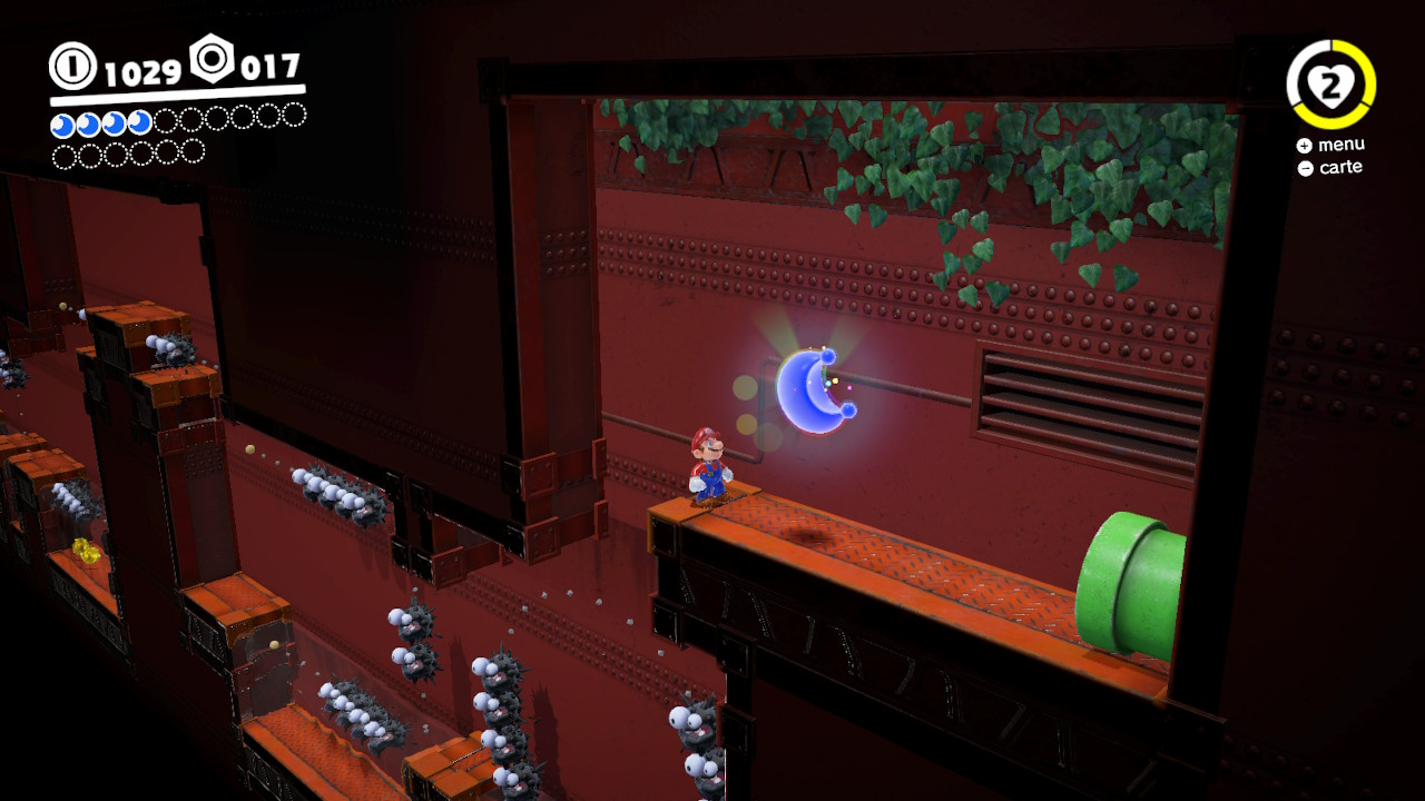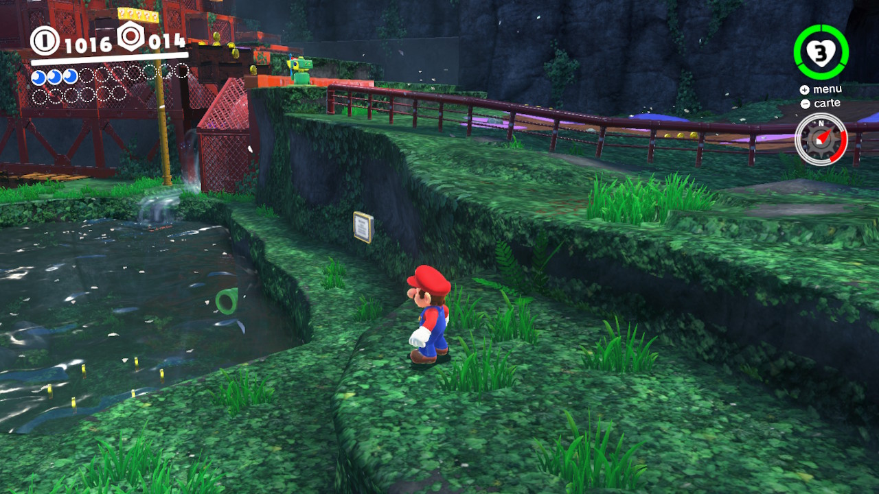 Avant de commencer, vous devrez acheter le costume d’explorateur dans la boutique spéciale en face de l’Odyssée et vous en équiper. Retournez ensuite dans la forêt perdue et dirigez-vous vers la cascade. Parlez au robot-arroseur devant et il vous ouvrira la porte cachée dans le cours d’eau. Rentrez-y et récupérez la lune.