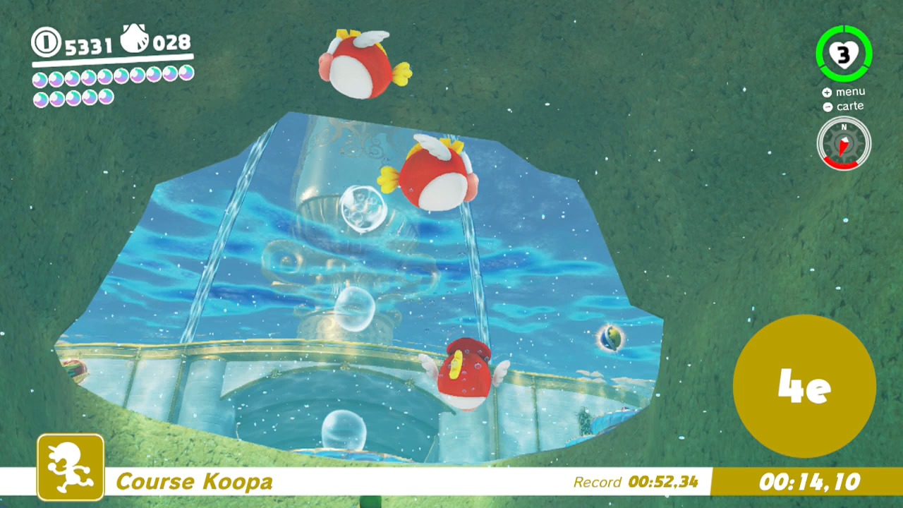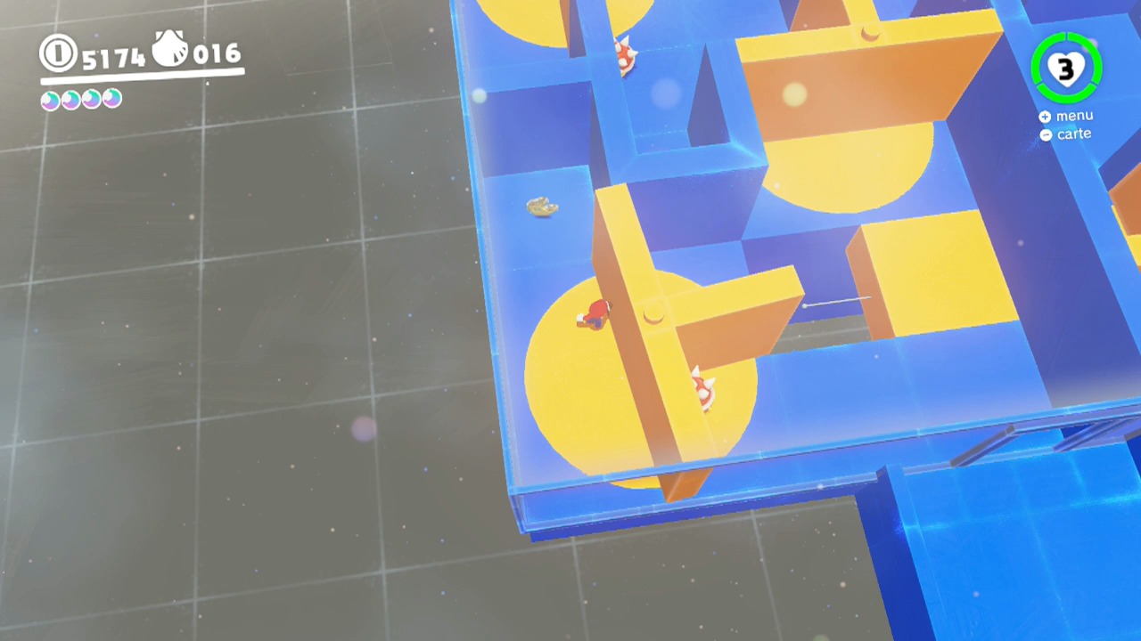 Dans le labyrinthe, faites pivoter les pièces jaunes avec Cappy, dans la direction désirée. Attention aux ennemis qui reviennent à l’infini.