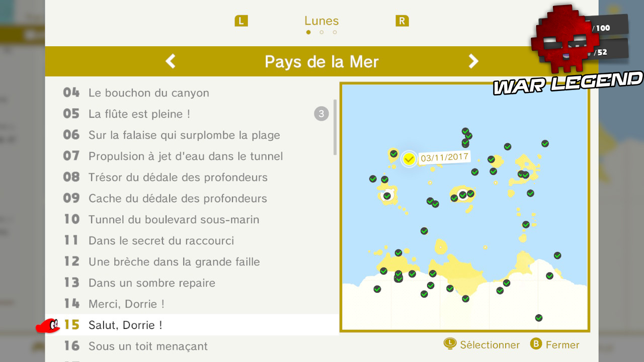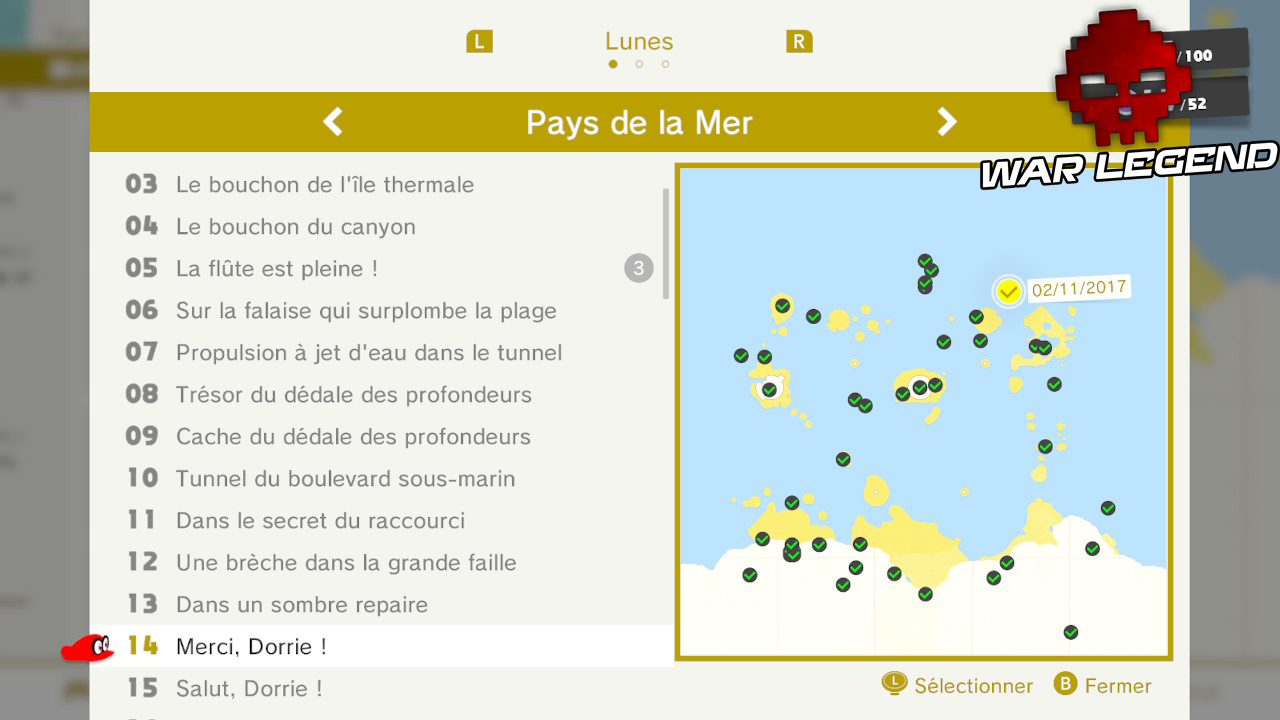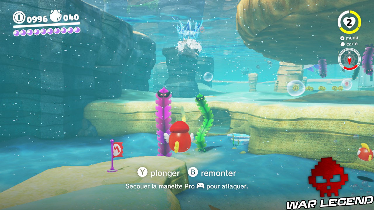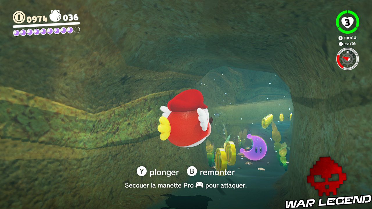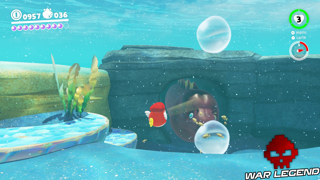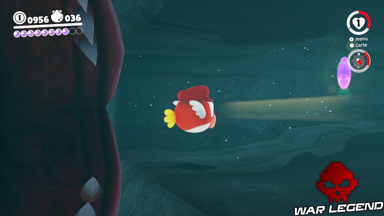 Au niveau de l’île nord-est, dans l’eau, au bord de la zone, vous trouverez un tunnel dans lequel une anguille a fait son nid. Attendez qu’elle jaillisse puis entrez et prenez à droite pour trouver une Lune.