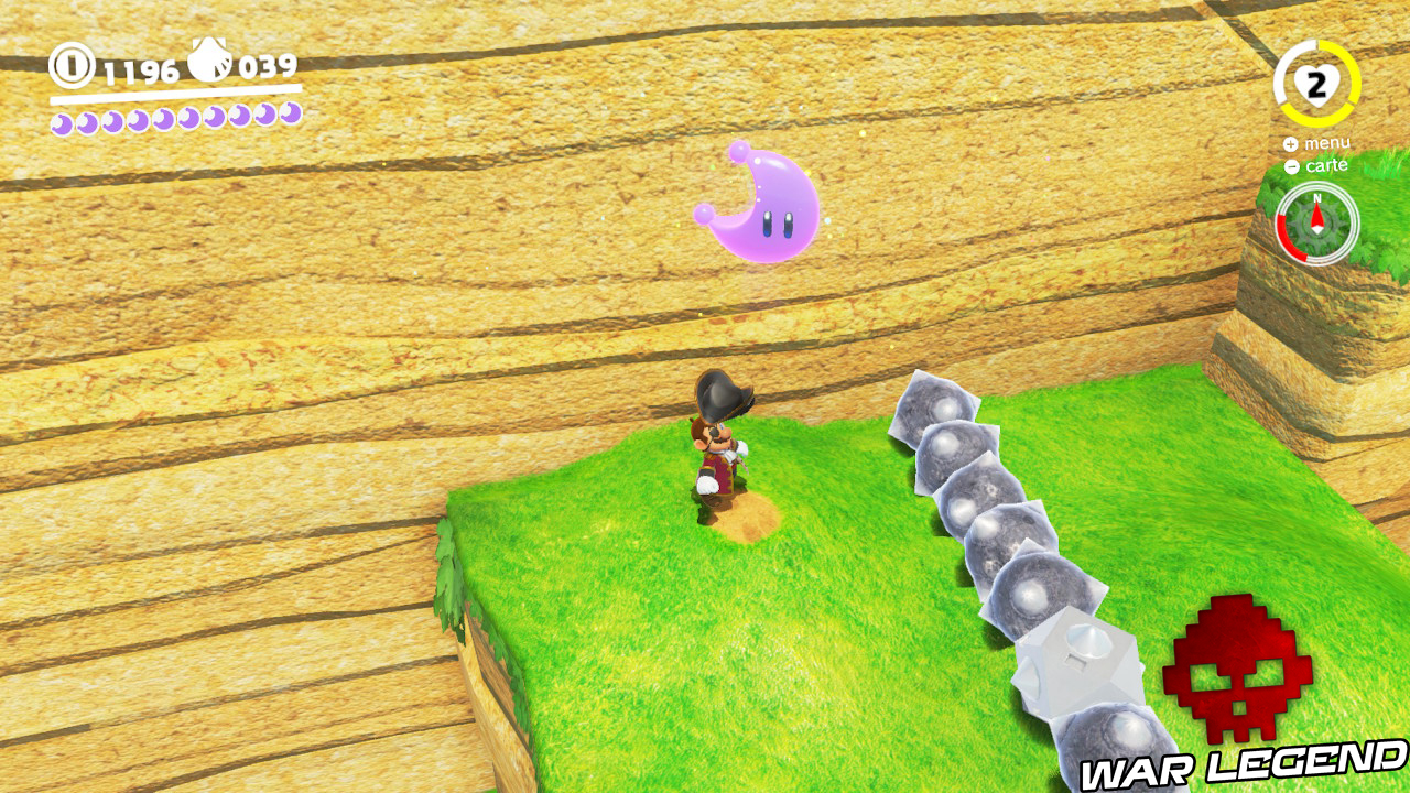 Ouvrez-la et, à l’intérieur, vous devez lancer Cappy sur la bosse qui se déplace afin de l’assomer puis appuyer sur ZL au-dessus d’elle afin de faire apparaître une Lune.