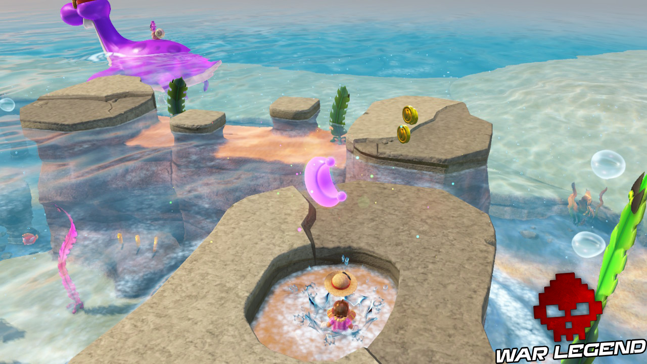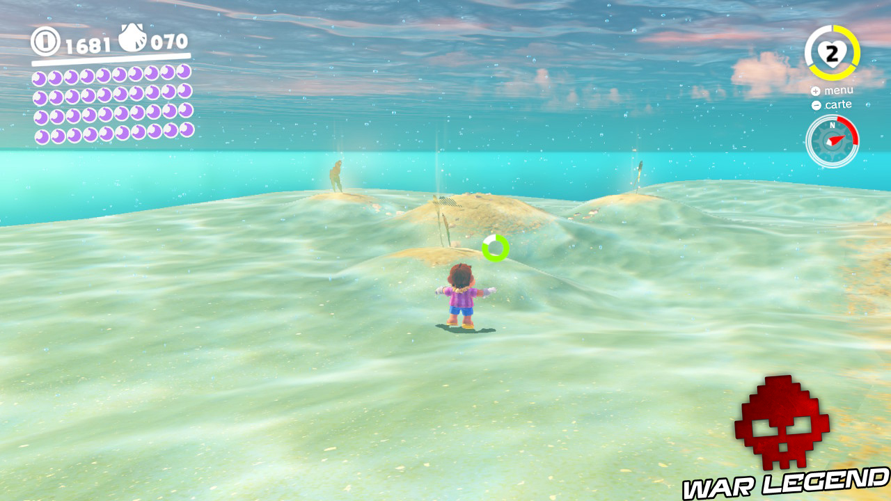 À l’est, au niveau du deuxième îlot au nord de la plage, il y a une algue dans une petite mare d’eau. Faites une charge au sol dedans.
