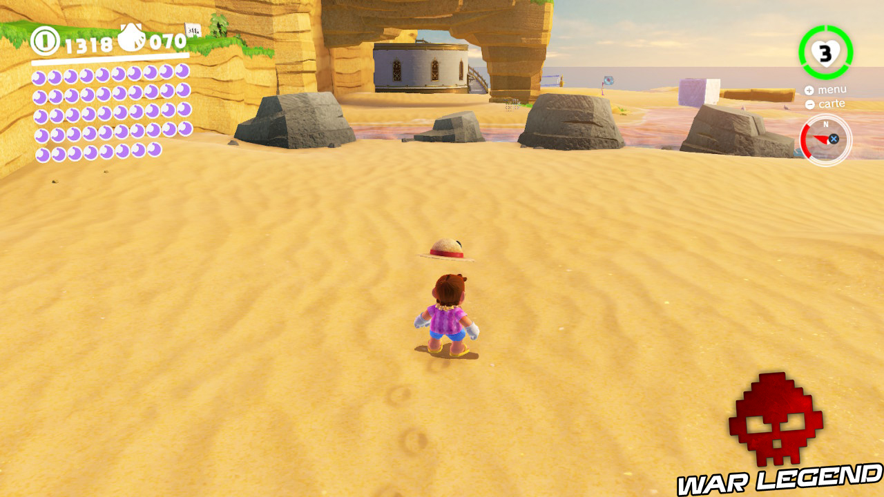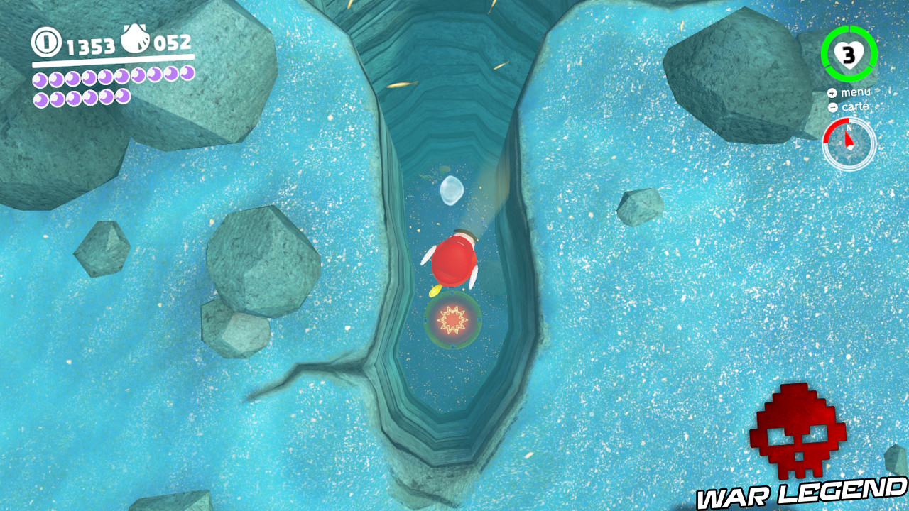 Juste au-dessus de l’île centrale, il y a un épouvantail bleu dans l’eau. Lancez Cappy dessus puis allez chercher la Lune le plus vite possible.