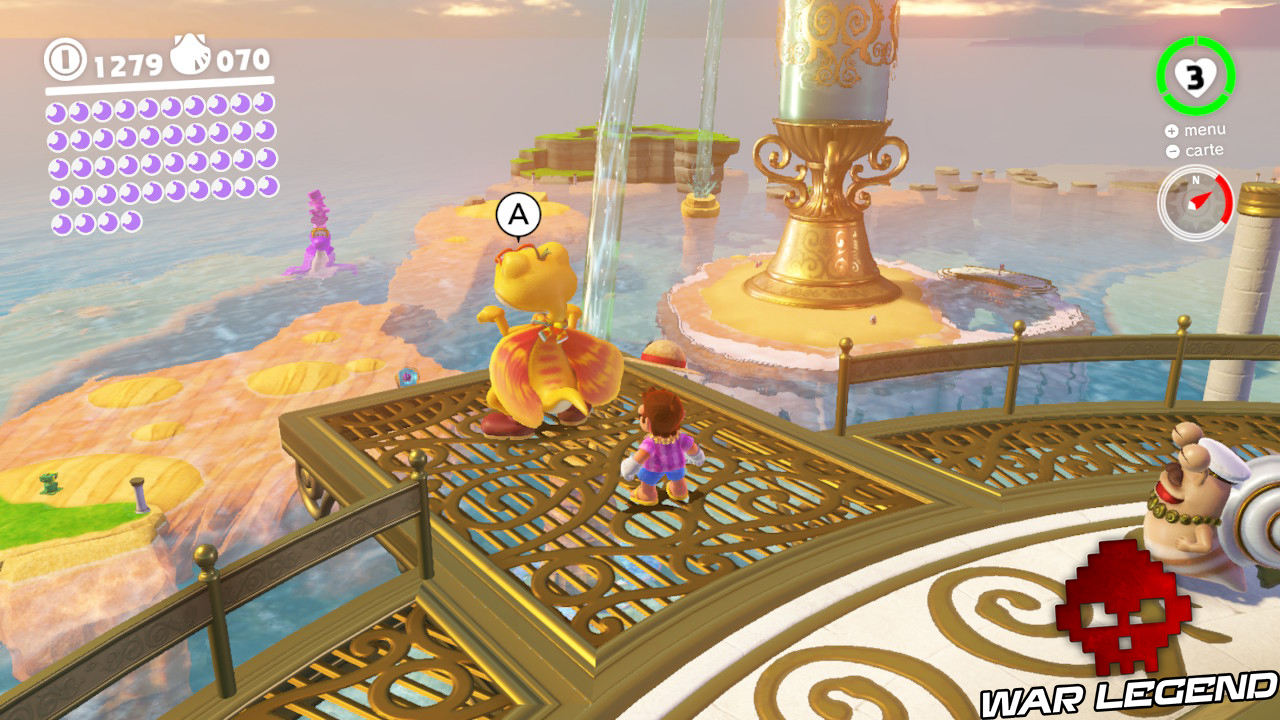 En haut du phare, lancez Cappy sur le petit dragon et planez jusqu’au bas de la flûte où on vous récompensera pour votre vol.