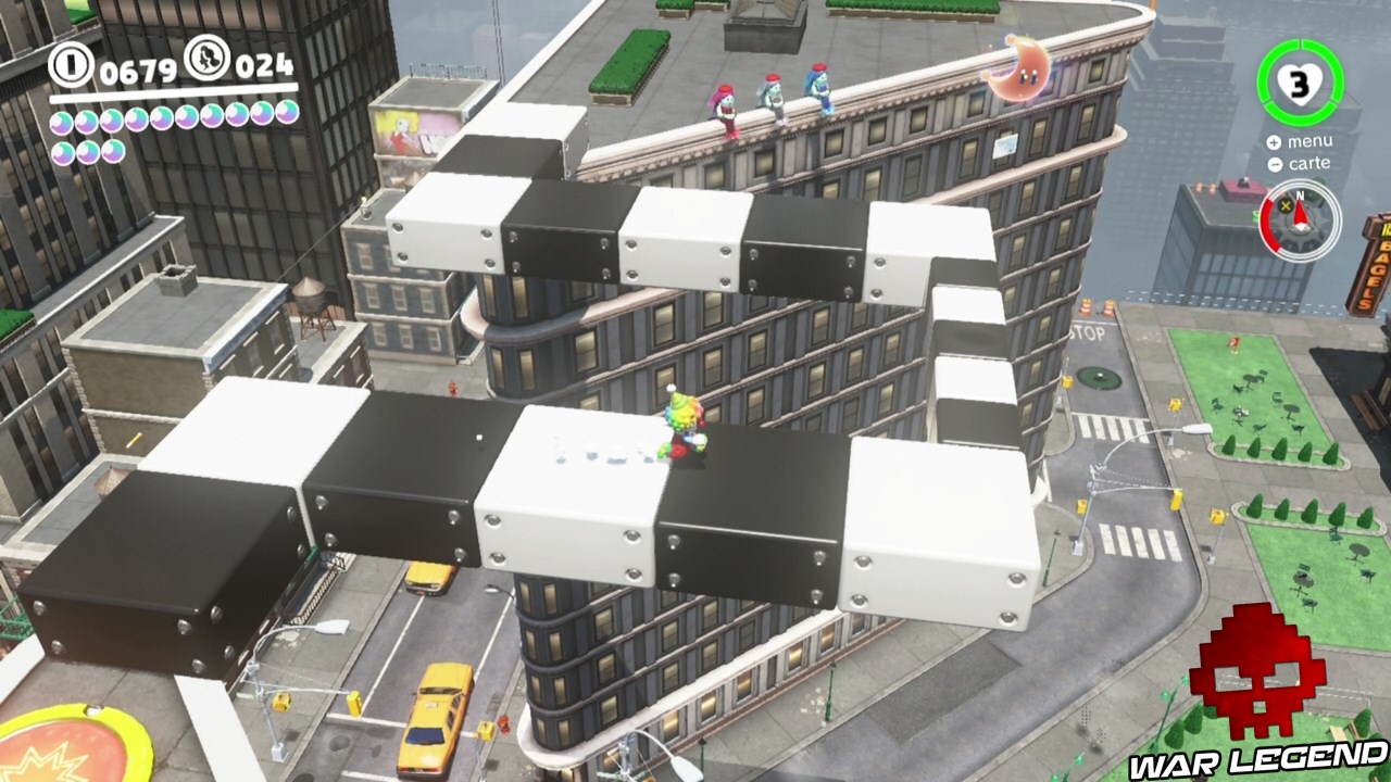 Sur le toit de l’immeuble, faites une charge au sol sur le bouton rouge pour dévoiler un passage menant à cette lune.