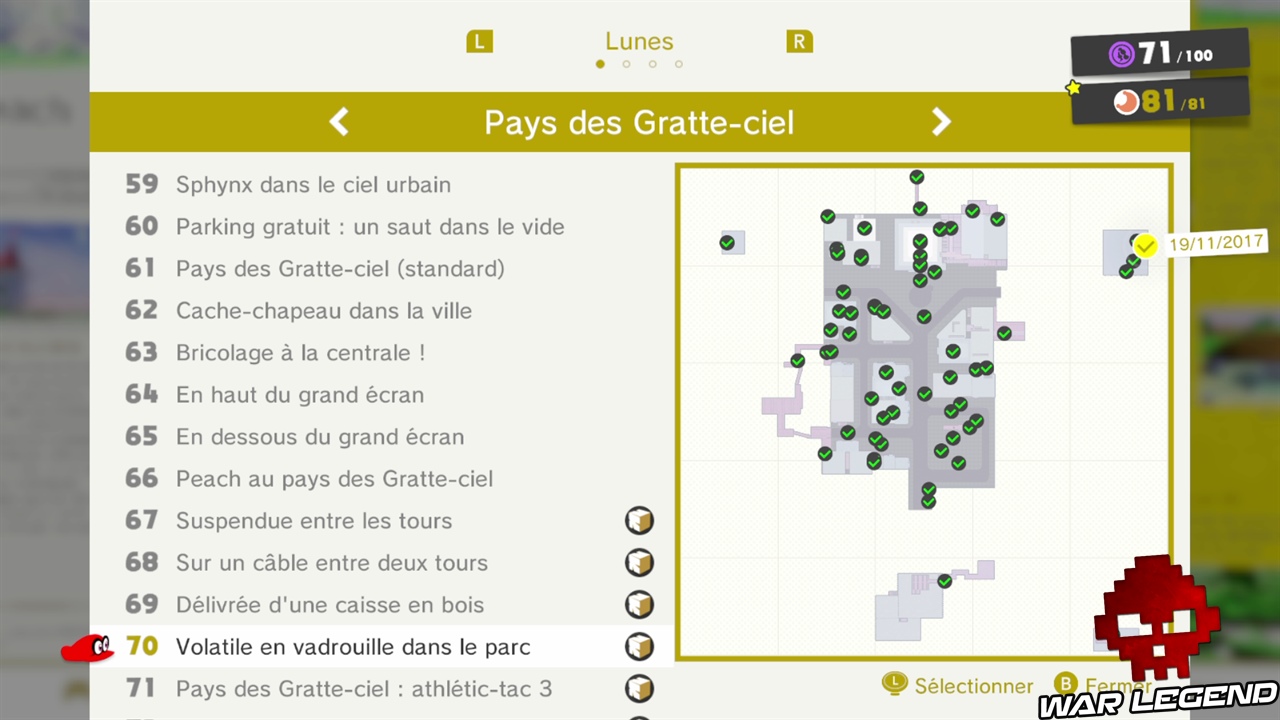 Chaque capture d’écran indique l’emplacement de la lune sur la carte en jaune. Attention : les lunes 54 à 81 seront débloquées uniquement lorsque vous aurez battu Bowser.