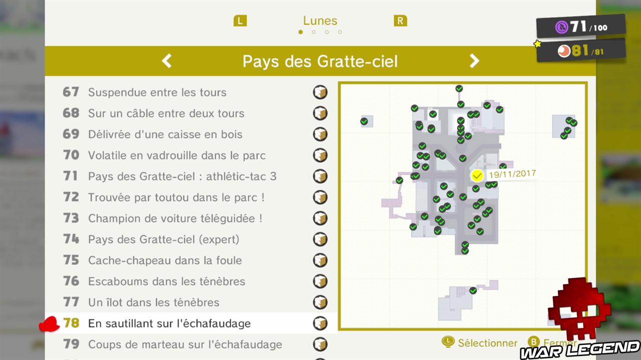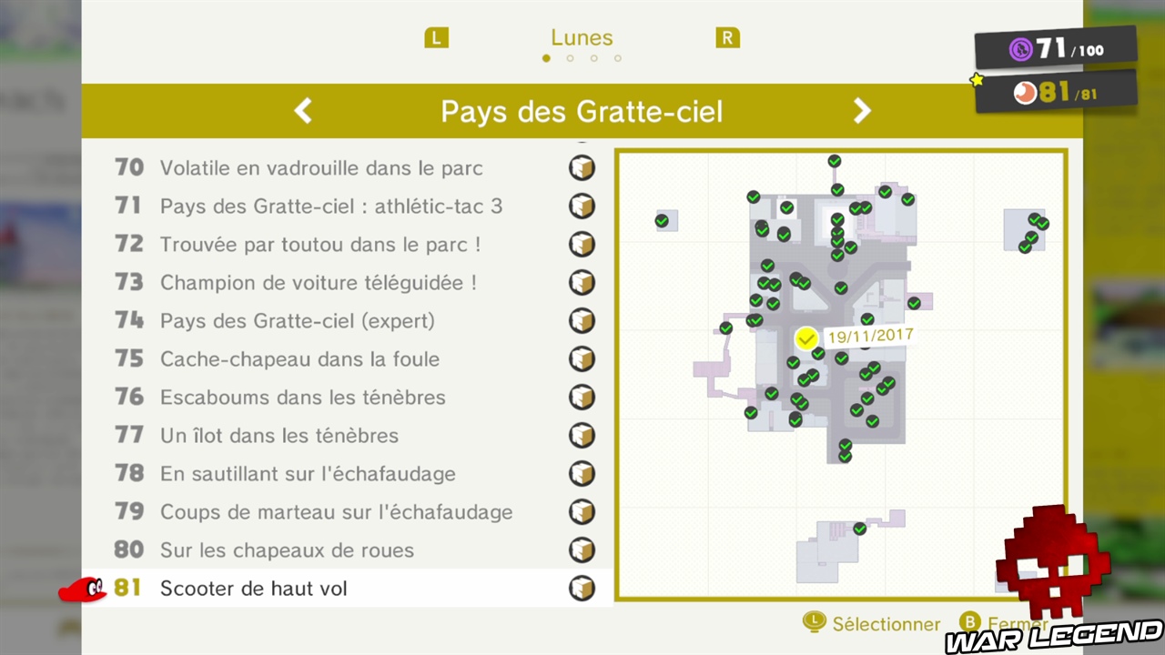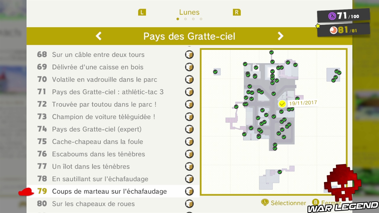 Chaque capture d’écran indique l’emplacement de la lune sur la carte en jaune. Attention : les lunes 54 à 81 seront débloquées uniquement lorsque vous aurez battu Bowser.
