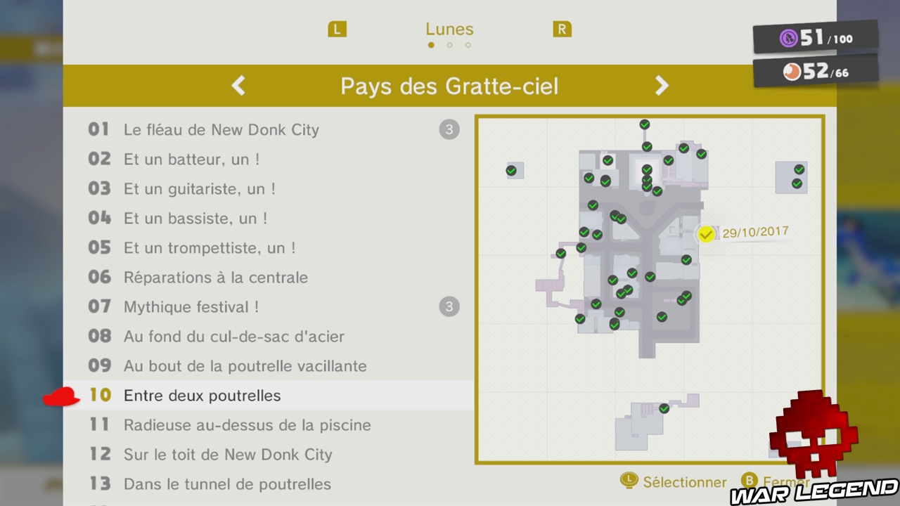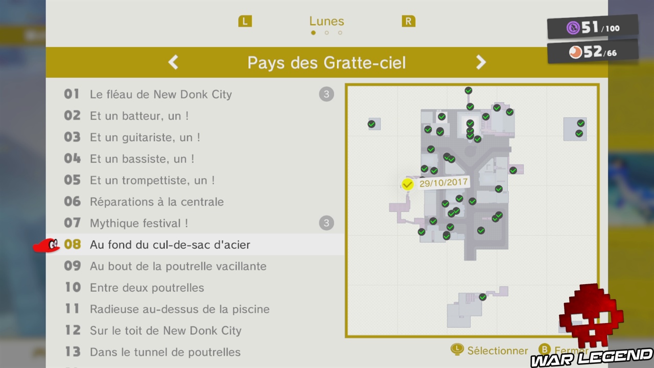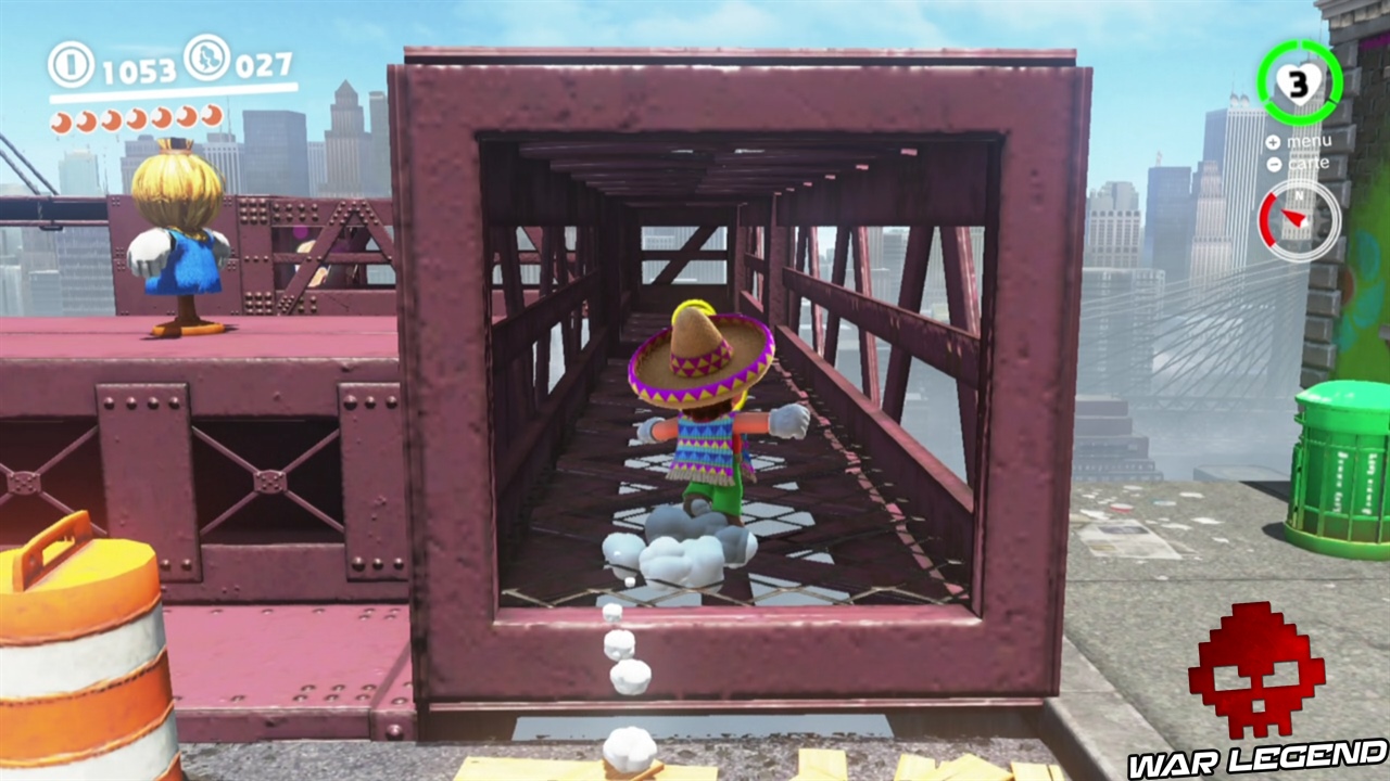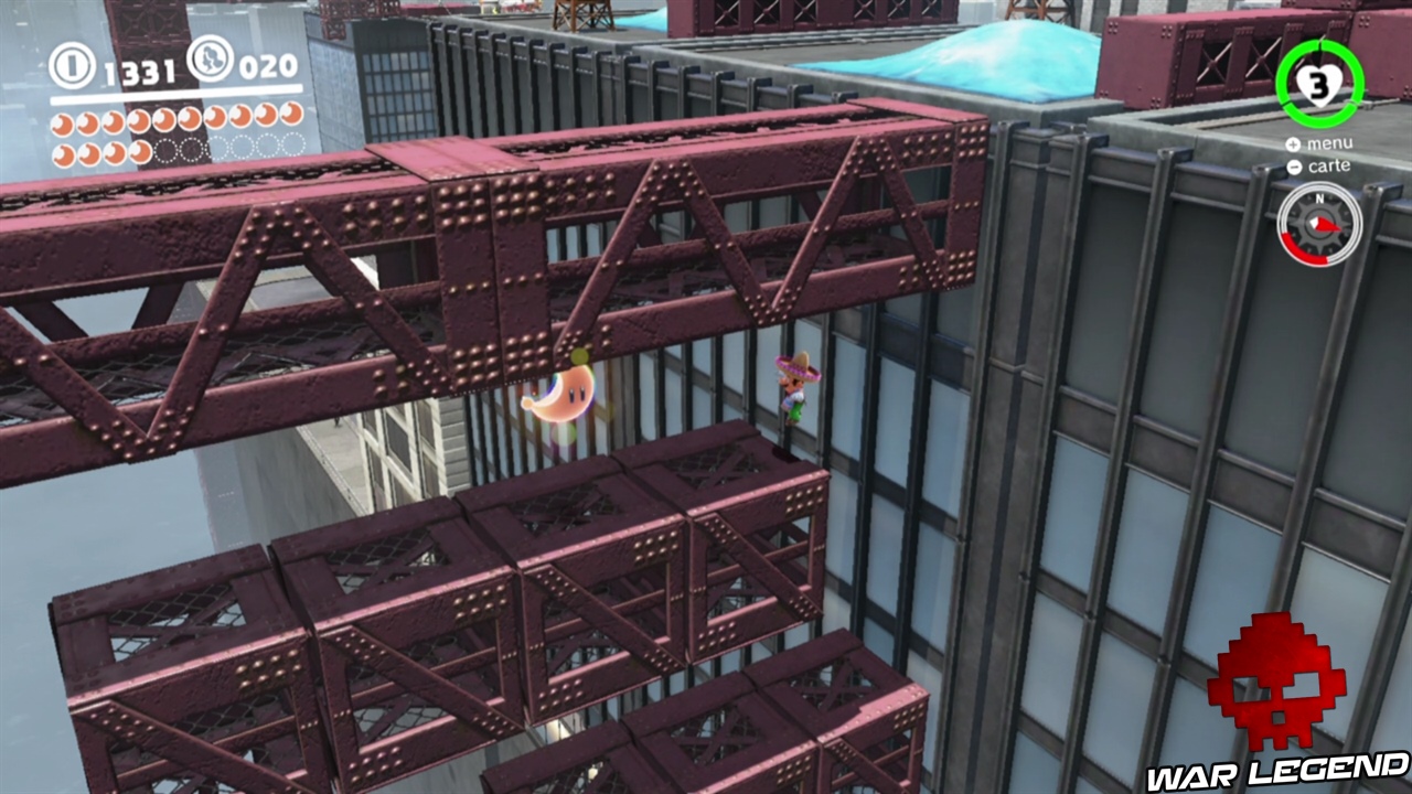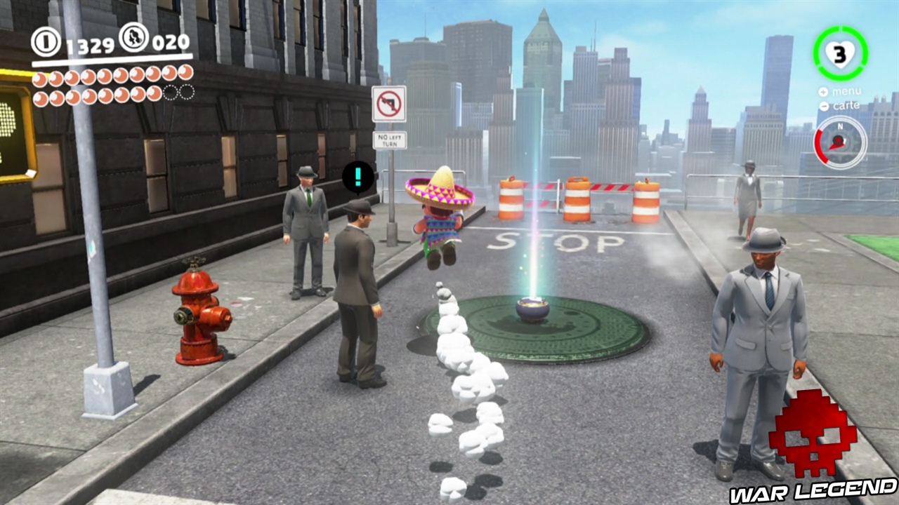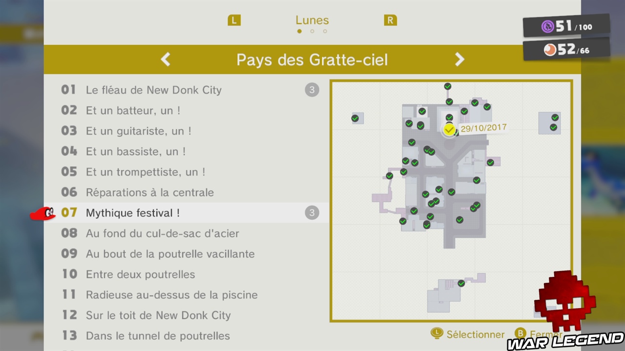 Félicitations, vous venez d’activer le festival de New Donk City. Vous n’êtes pas obligé de le jouer maintenant, si vous avez déjà ramassé 20 lunes, vous pouvez partir pour le pays suivant, au choix soit au Pays des Neiges, soit au Pays de la mer. Notez que si vous avez oublié une lune dans le festival, vous pouvez le rejouer en parlant à un homme au chapeau, dans le hall de l’hôtel de ville. Dans le festival il y a deux lunes dans ce monde, en plus de celle-ci numéro 7, il y a également la lune 36 qui est cachée !