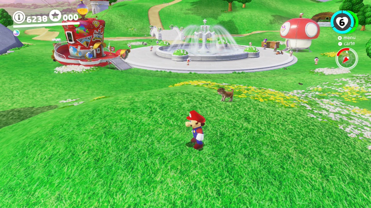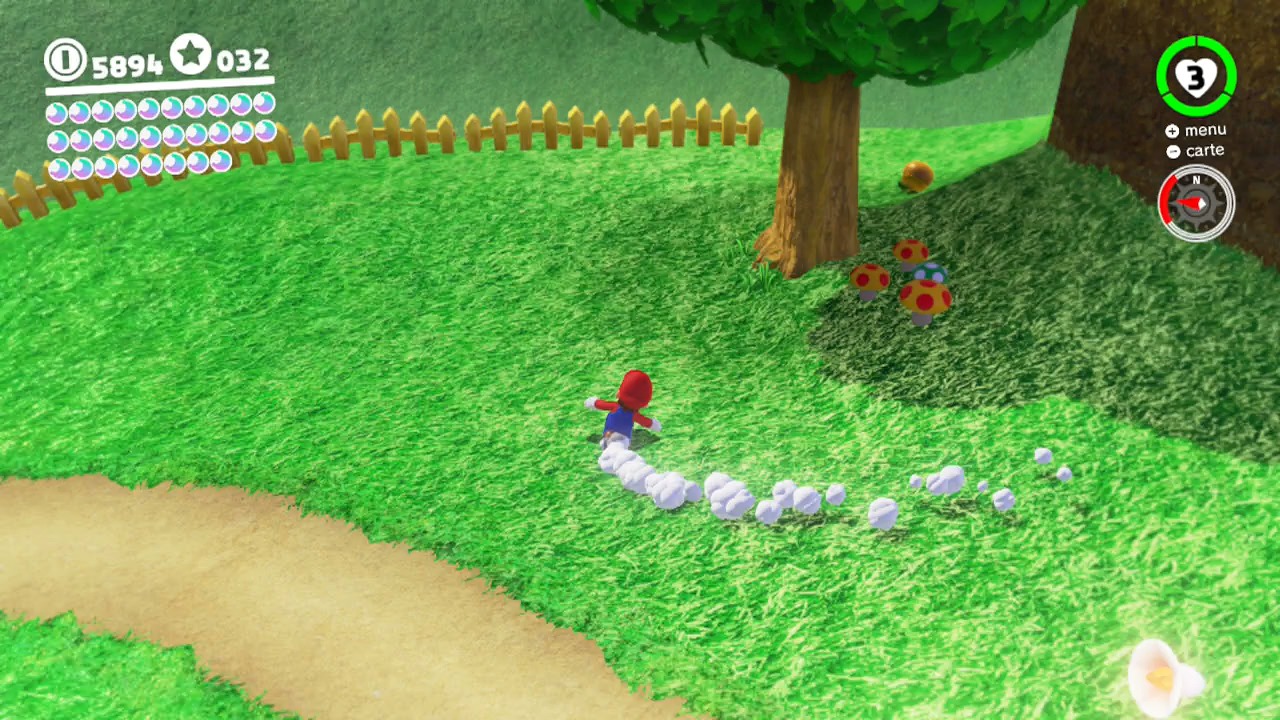 Il y a un cercle de fleur au nord-est du château. Secouez votre manette sur le côté en vous tenant au centre pour faire éclore toutes les fleurs d’un coup à l’ade de Cappy.