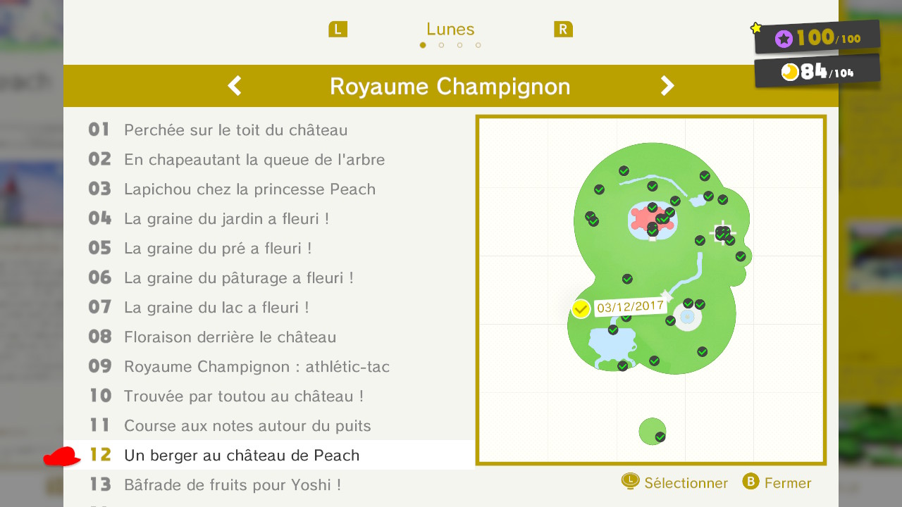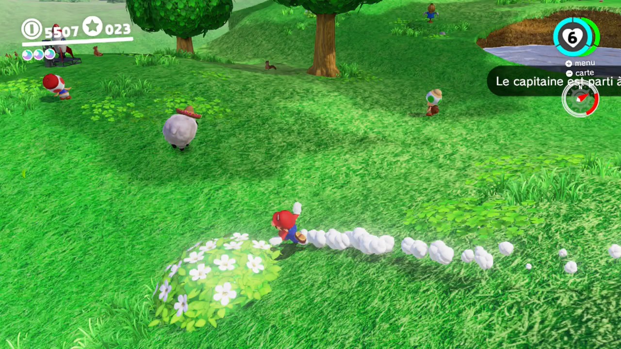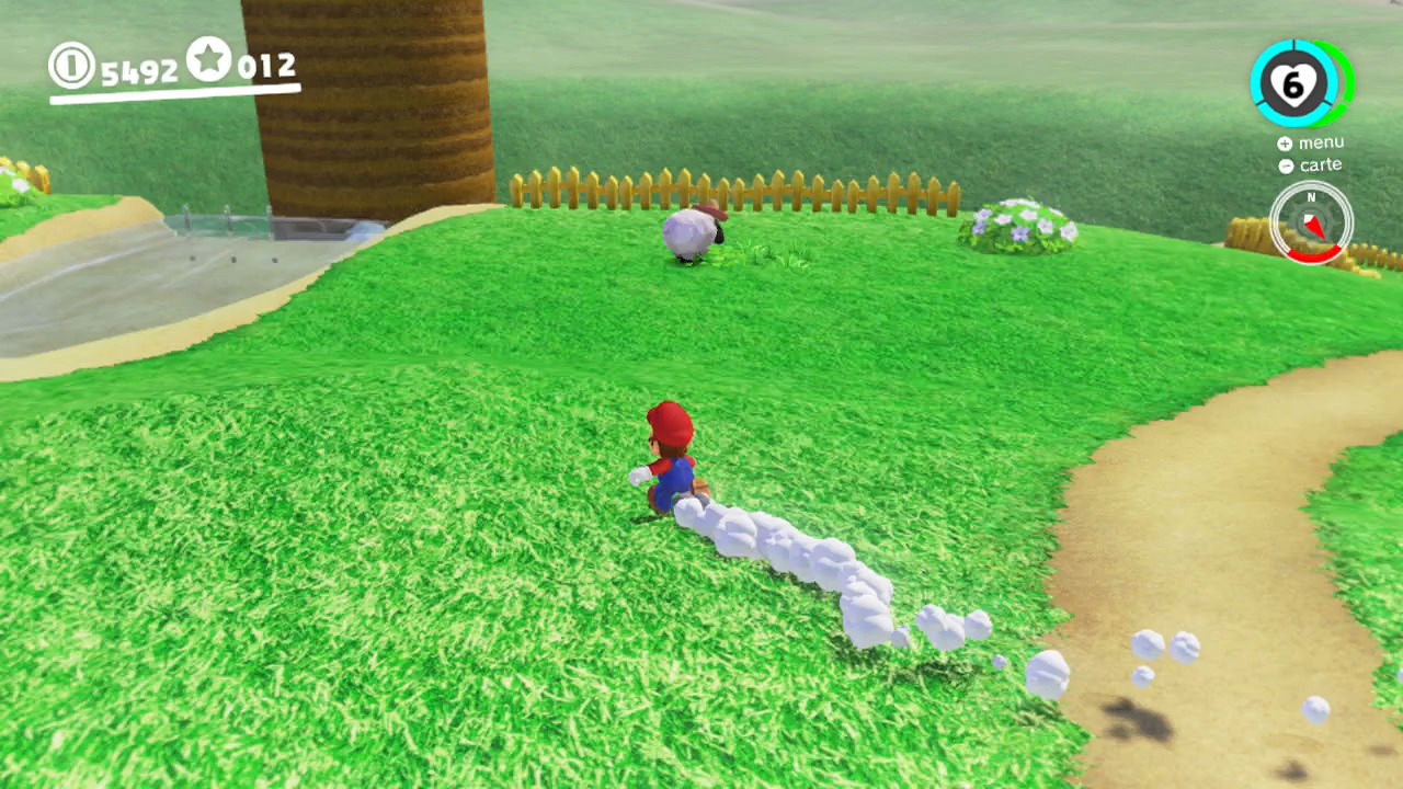 Il y a six moutons répartis dans tout le domaine. Guidez-les dans l’enclos de Toad avec l’aide Cappy ou en les bousculant.