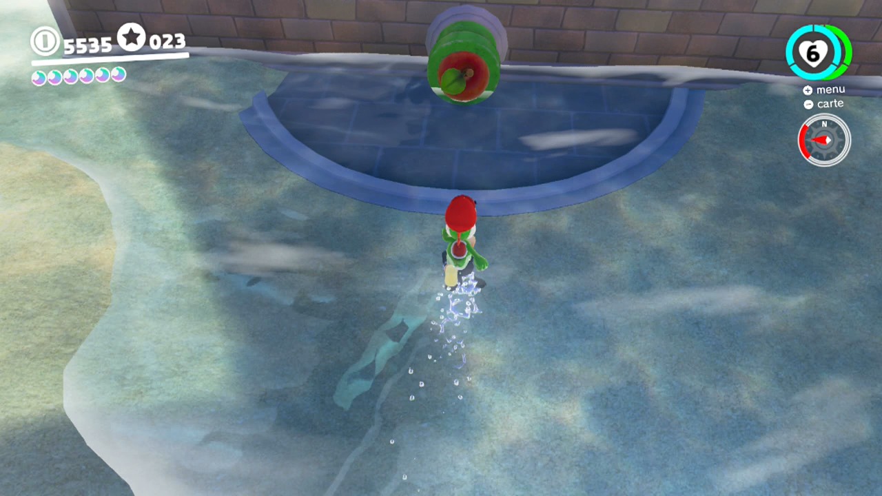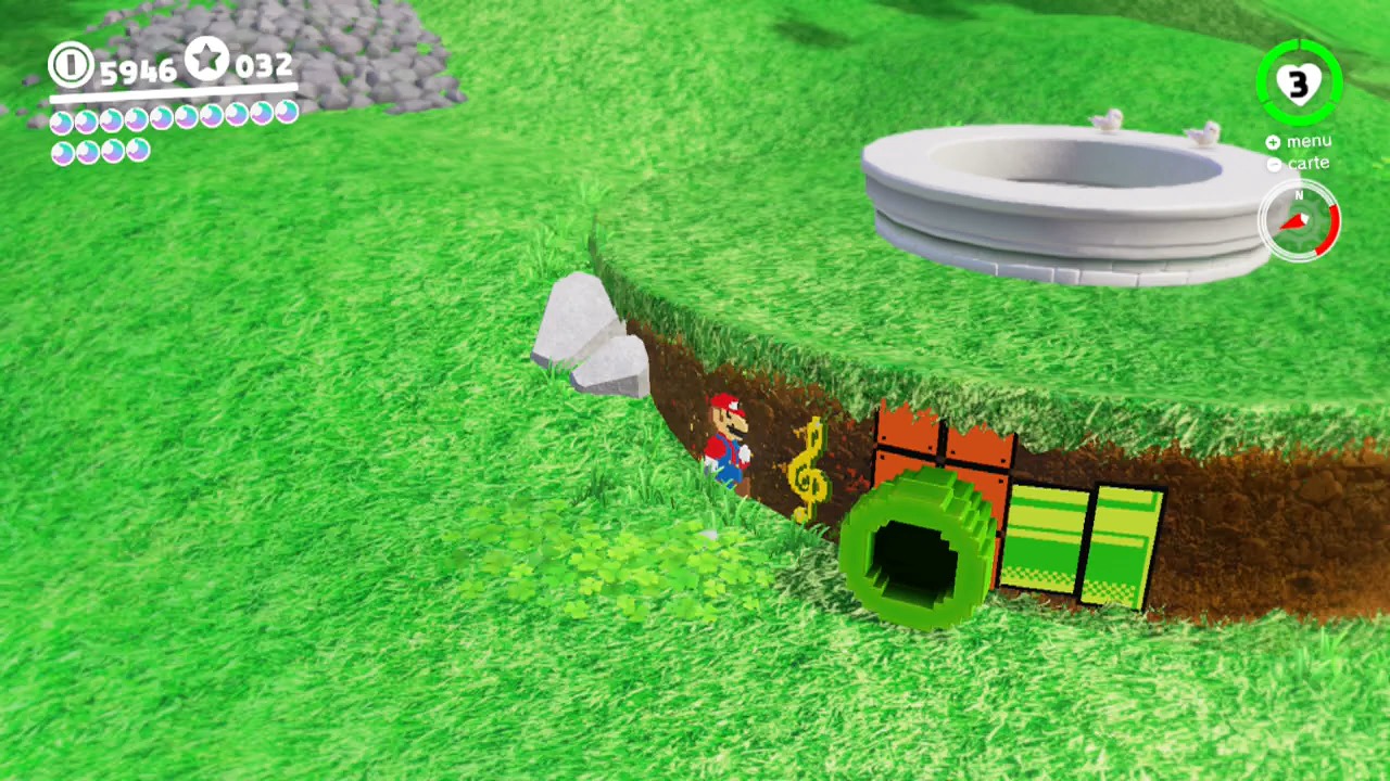 Sur la façade du puits, il y a une clé de sol en 2D incrustée. Rentrez dans le tuyau puis faites le tour par la droite.