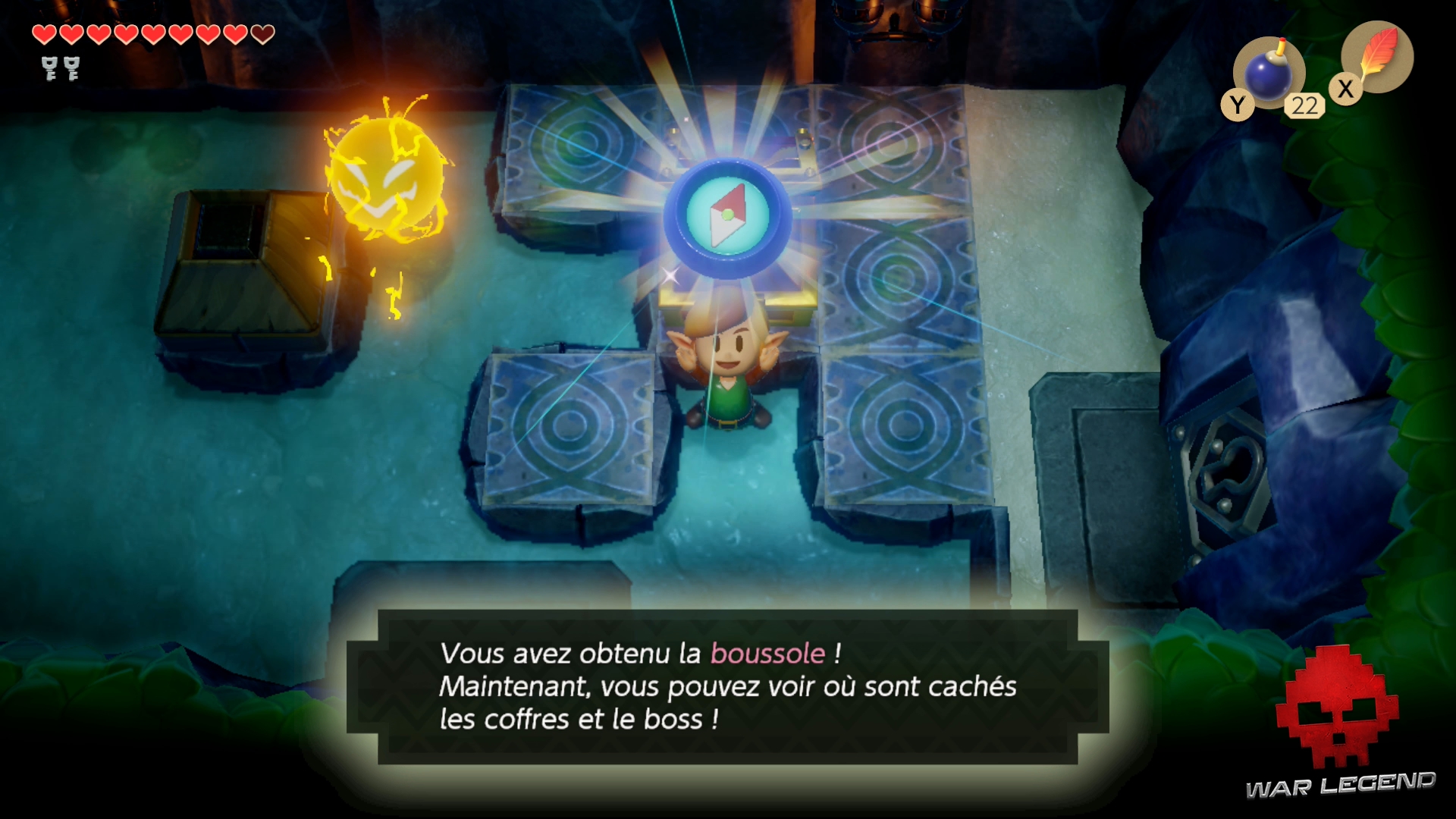 Revenez vers l’entrée du donjon et prenez la petite porte à droite juste avant l’entrée. Récupérez la boussole et prenez à porte juste en dessous.