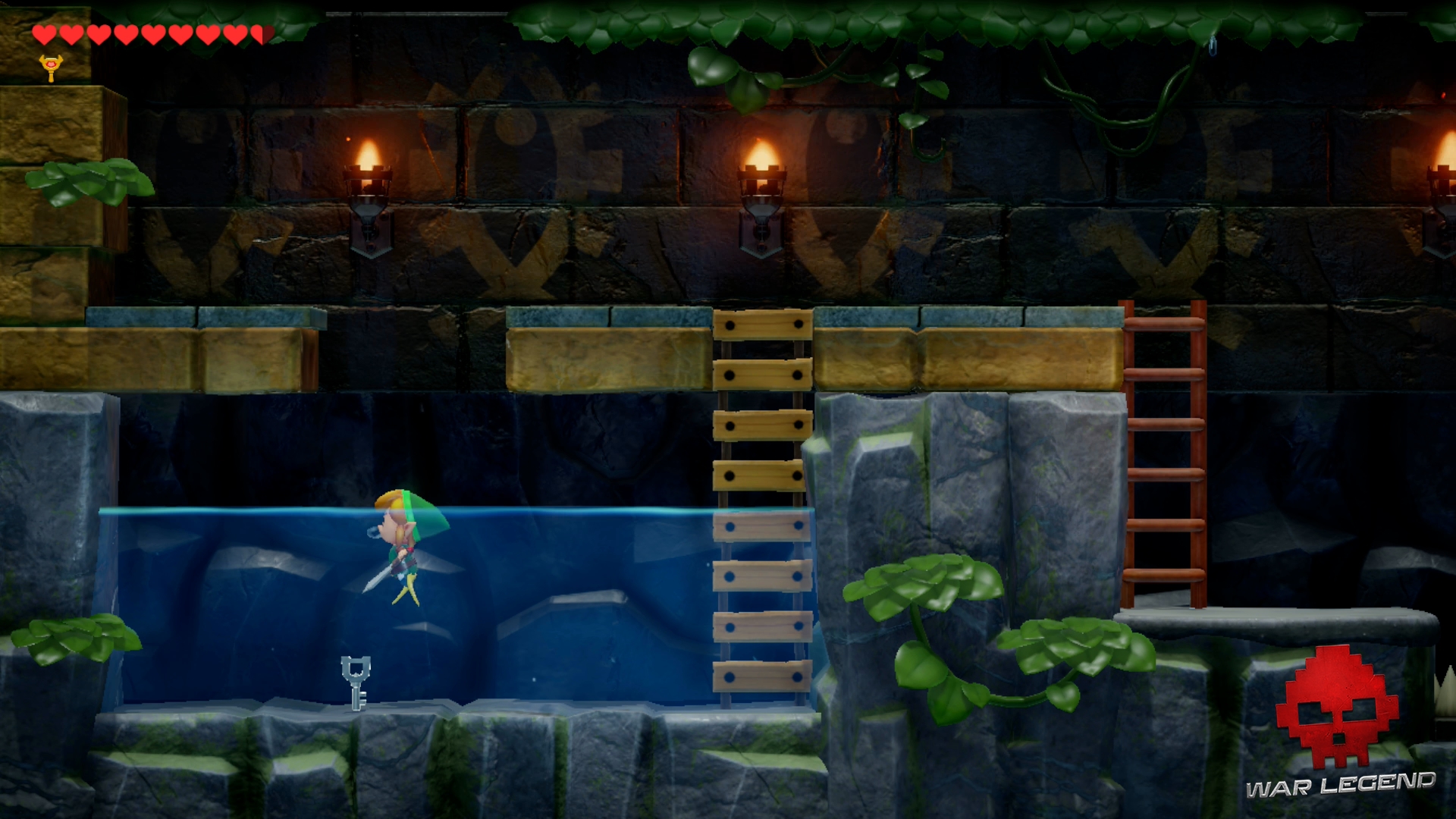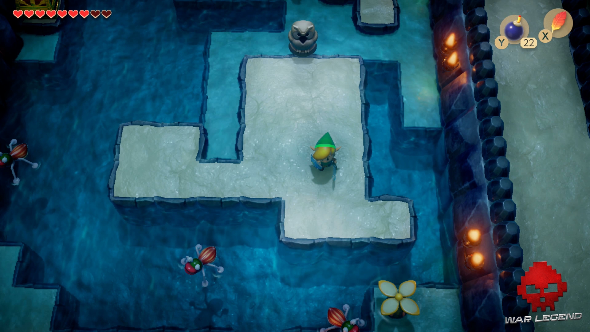 Allez dans la grande salle pleine d’eau, et appuyez sur le bouton. Déverrouillez le bloc qui se présente devant vous et descendez les escaliers. Traversez cette nouvelle phase sous-marine et ouvrez la porte du boss.