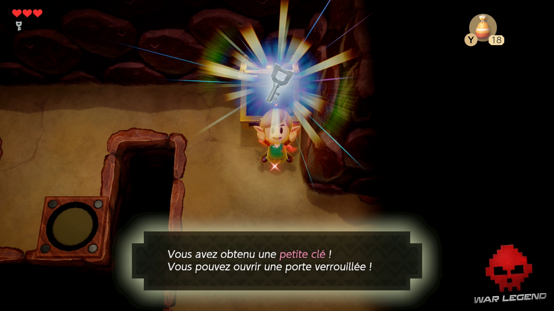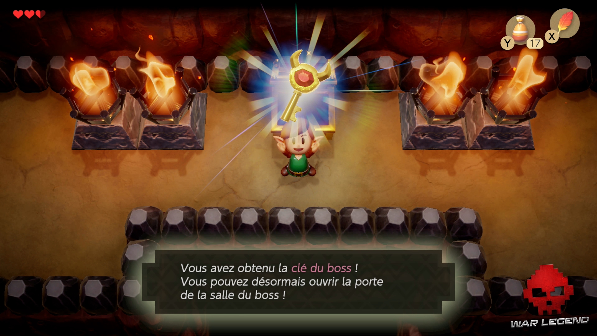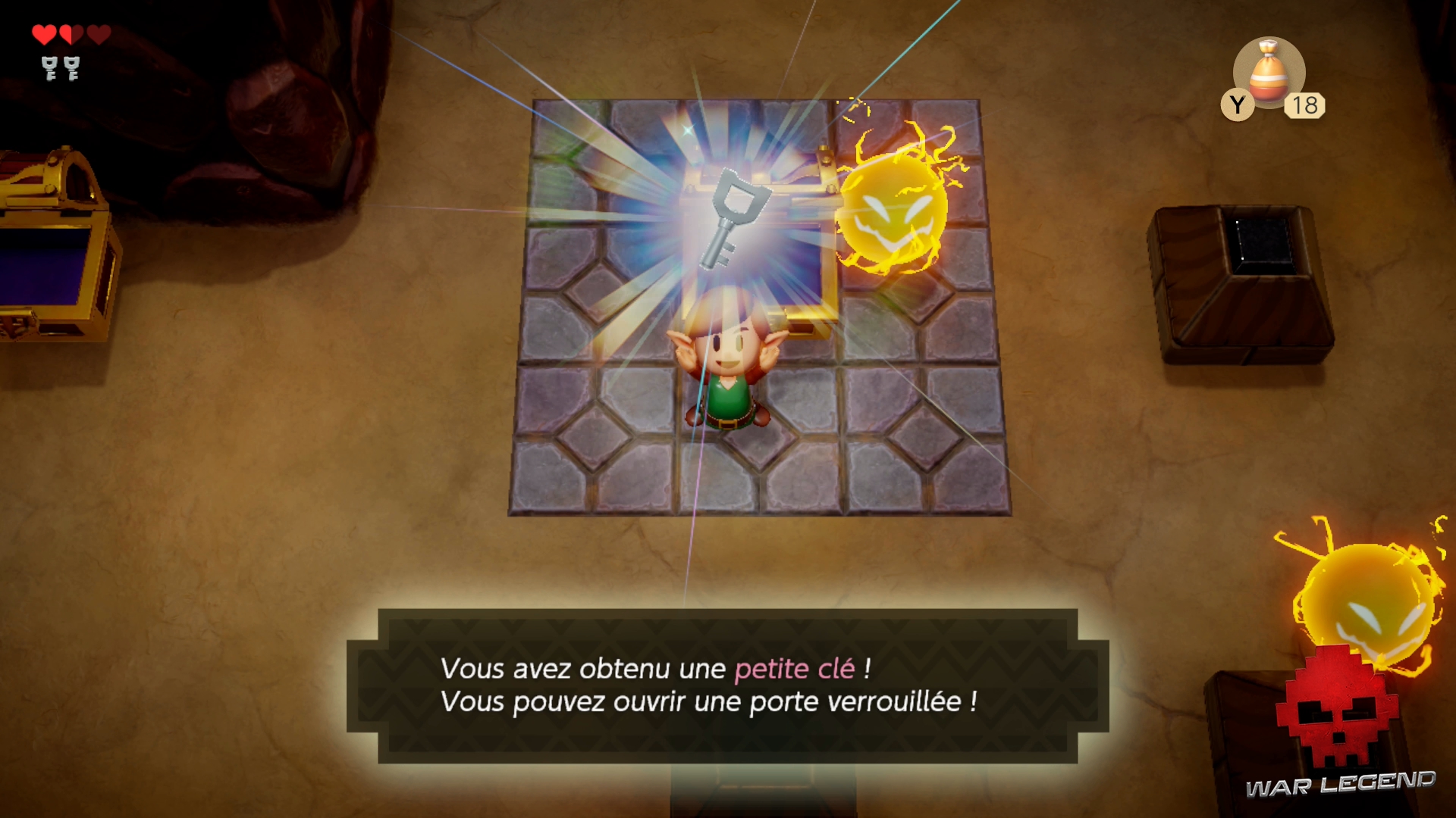 Continuez sur le chemin débloqué et ouvrez le coffre pour récupérer la clé du boss. Fini de rigoler.