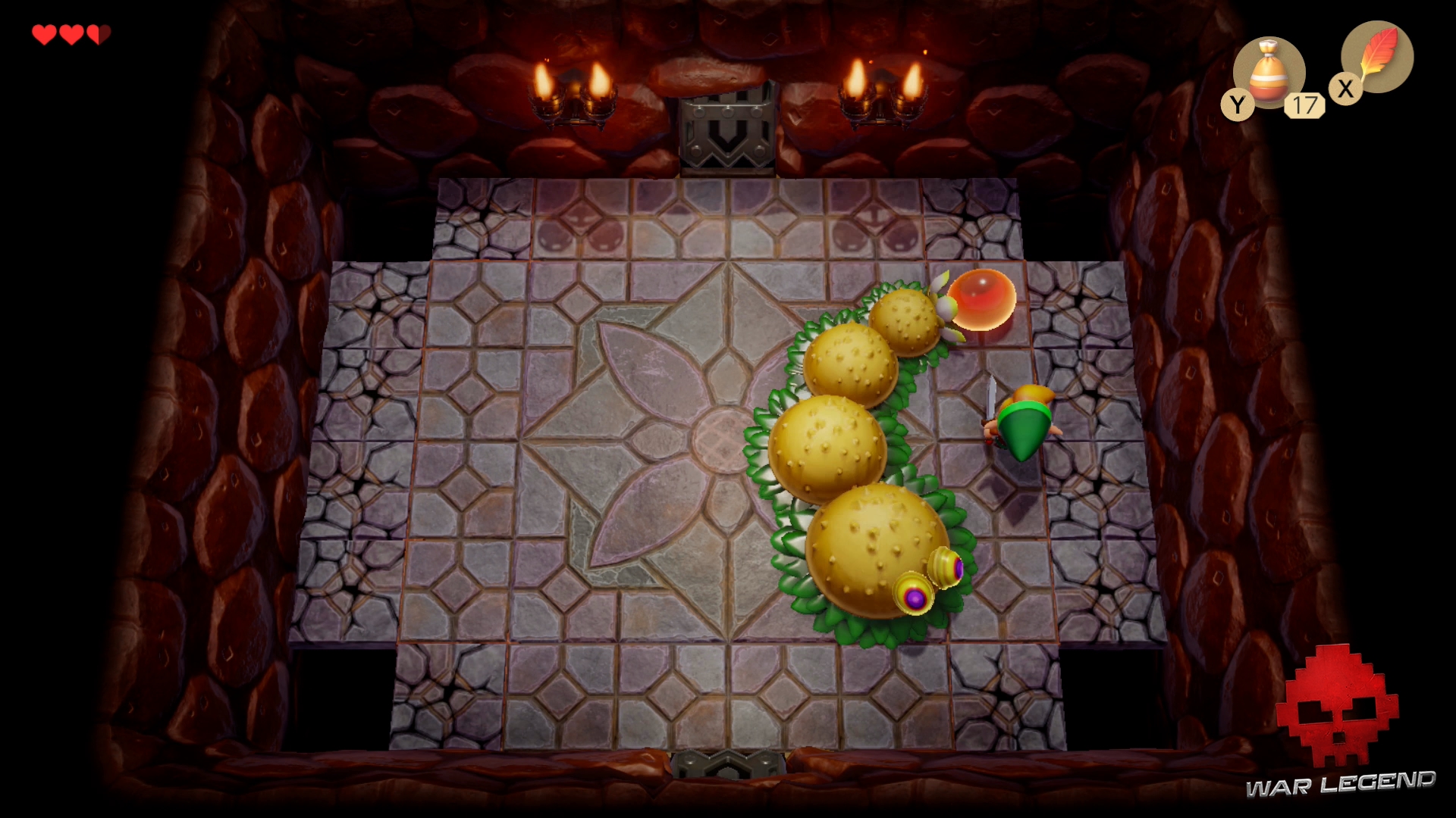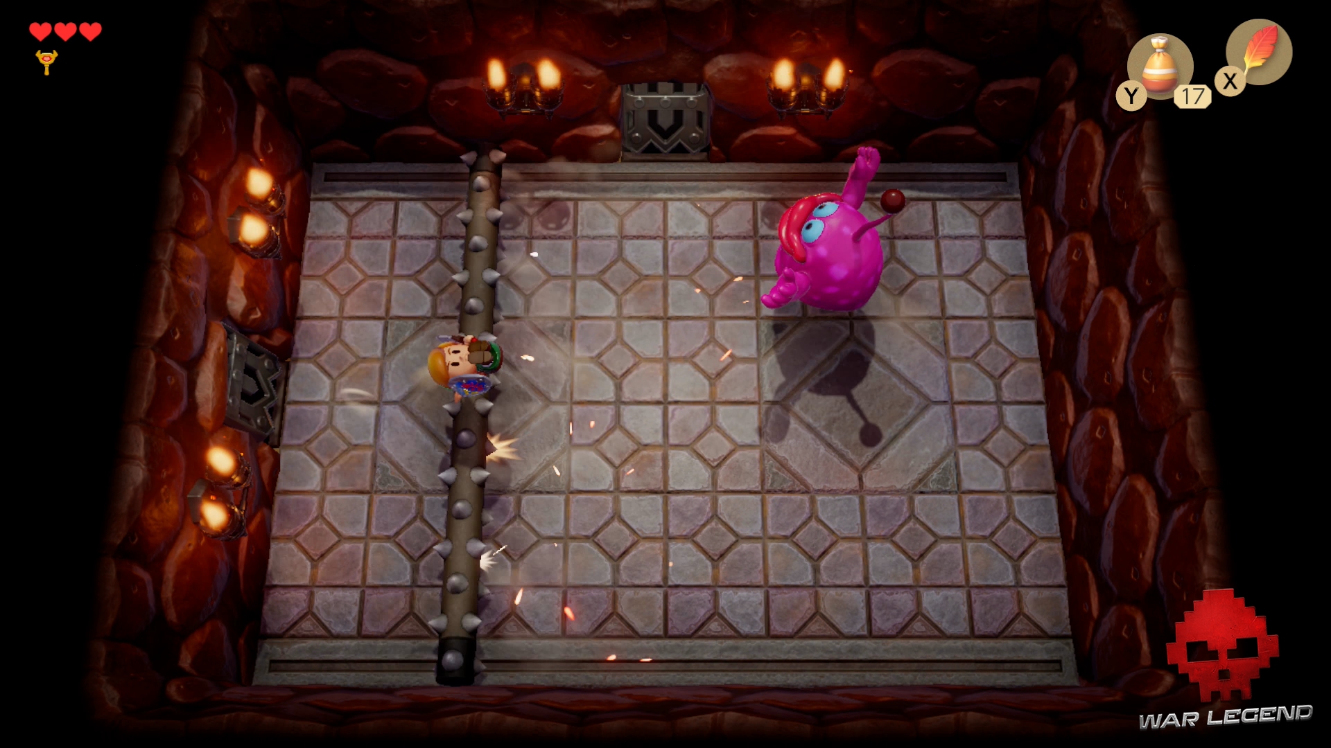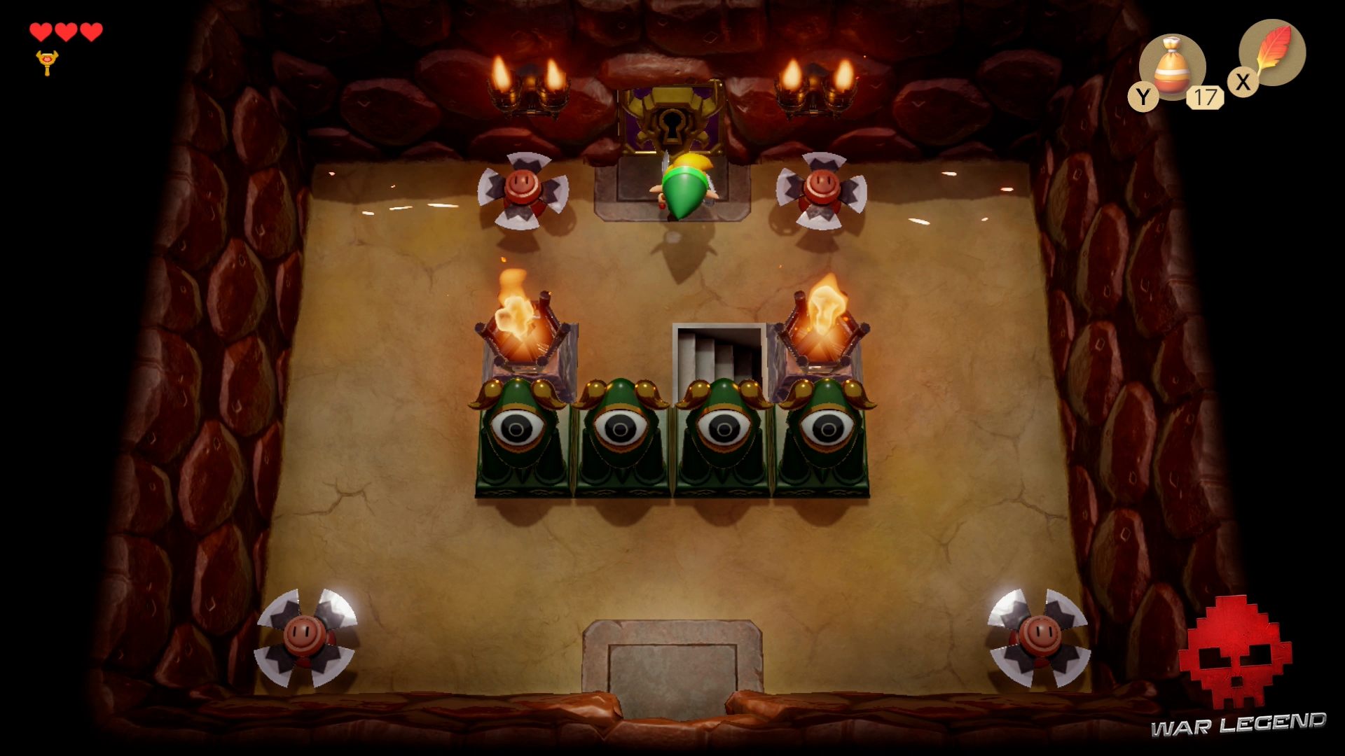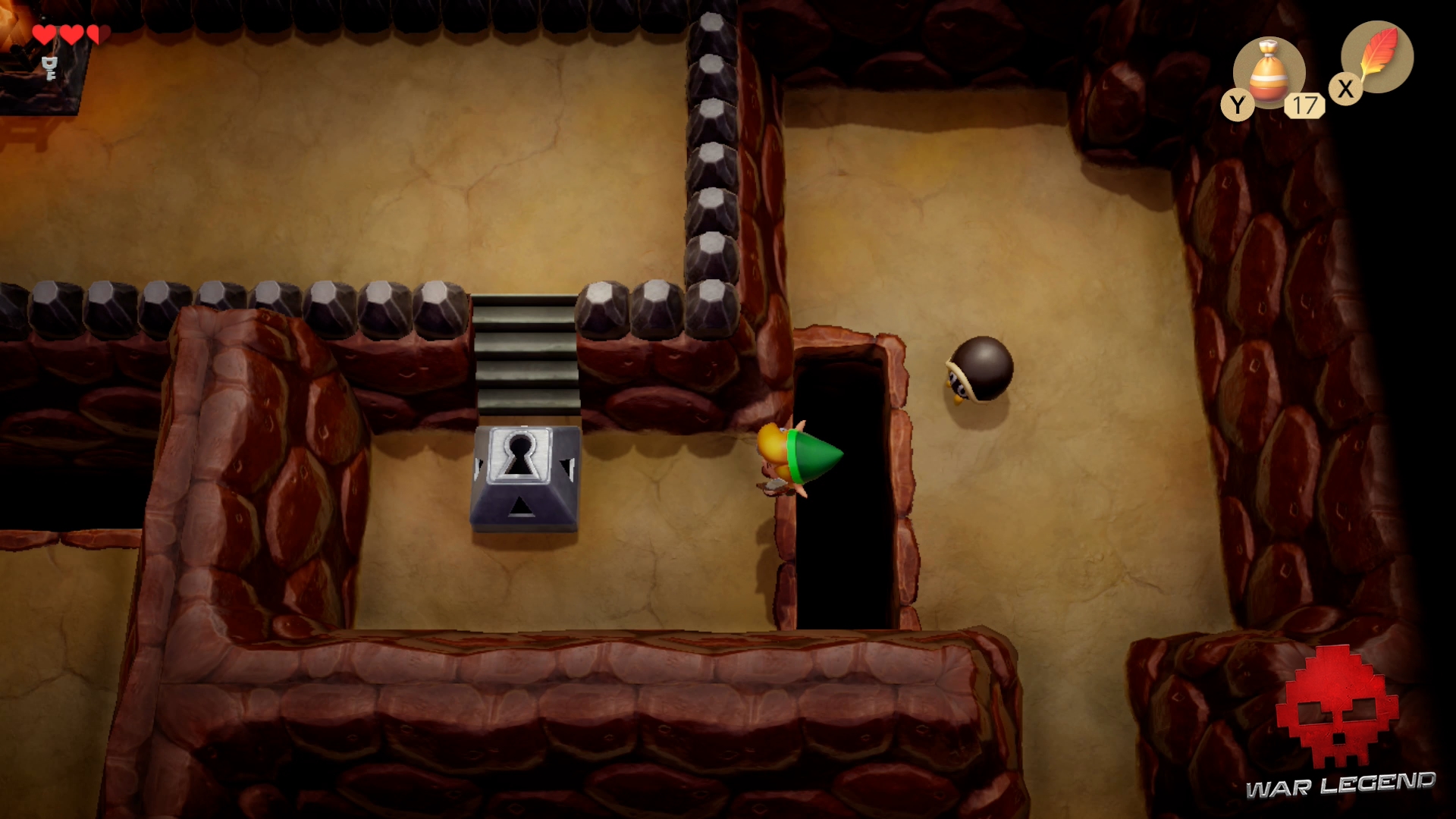 Une fois le chemin dégagé, continuez et déverouiller la porte du boss avec la clé. Si vous manquez de cœurs, descendez l’escalier pour en récupérer 3.