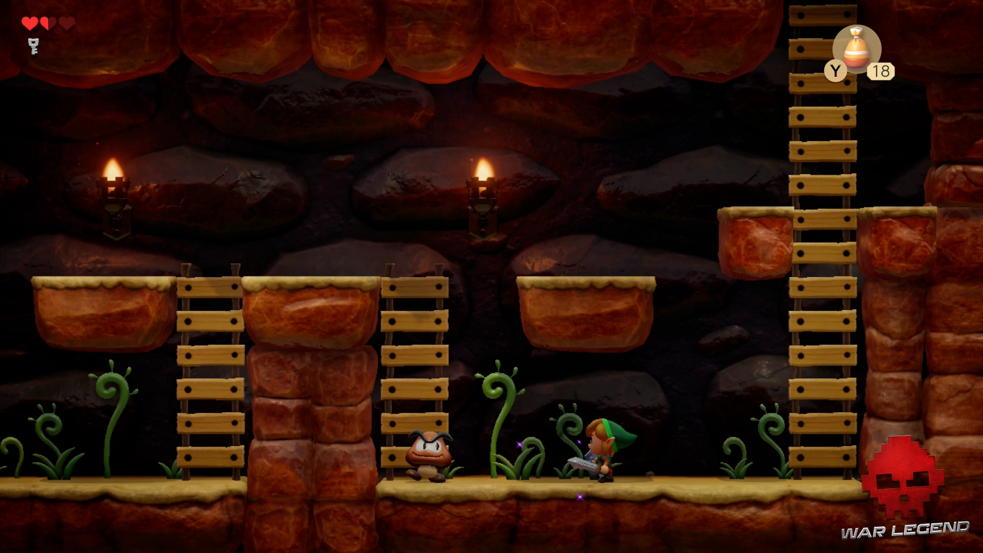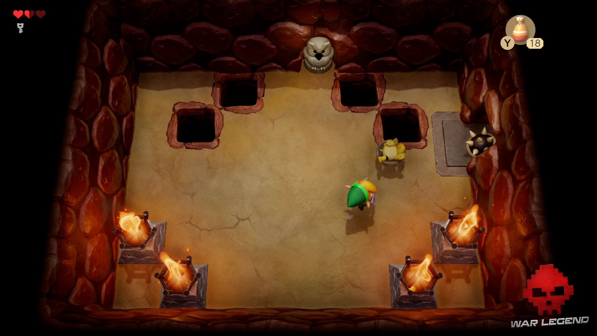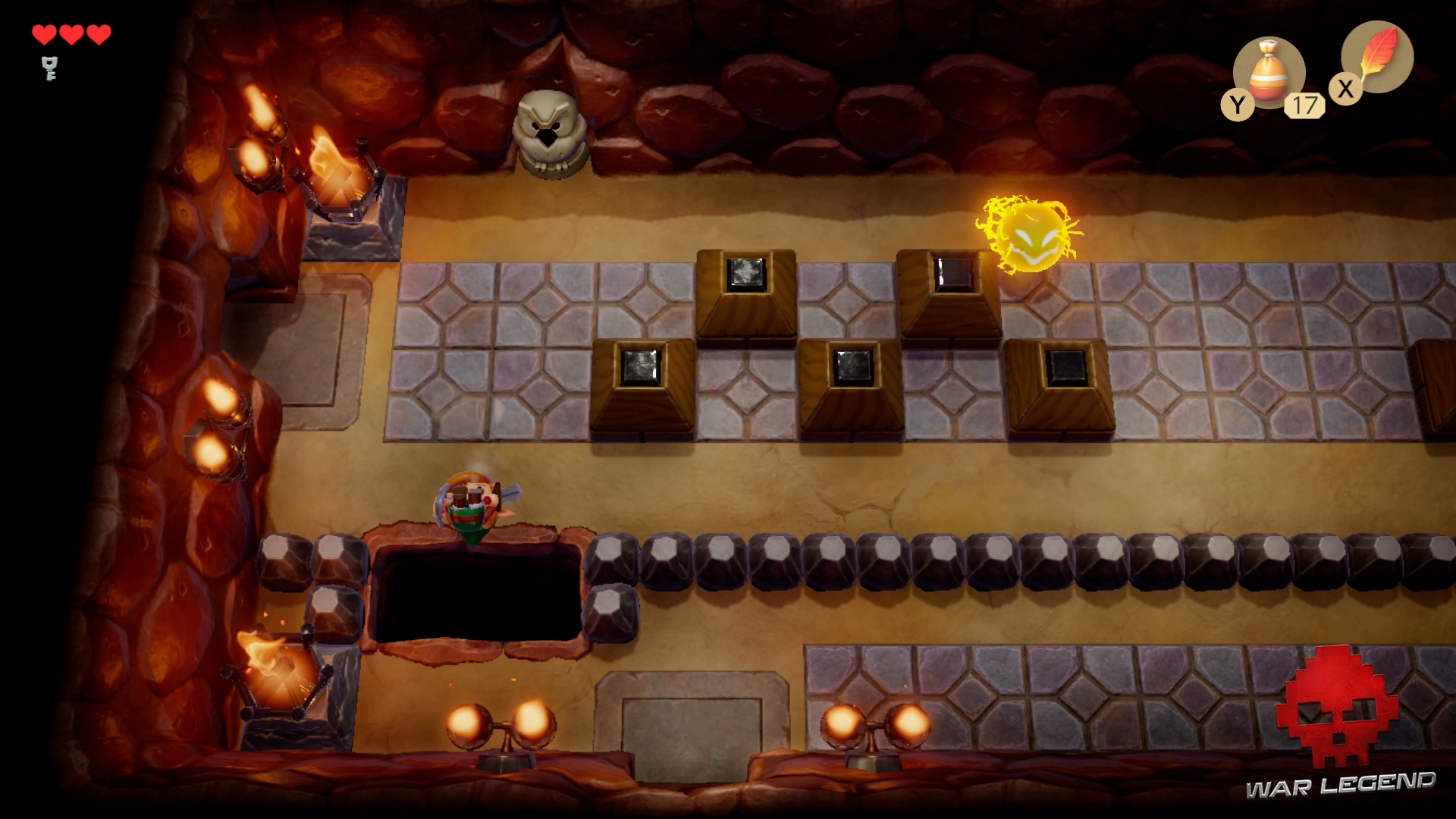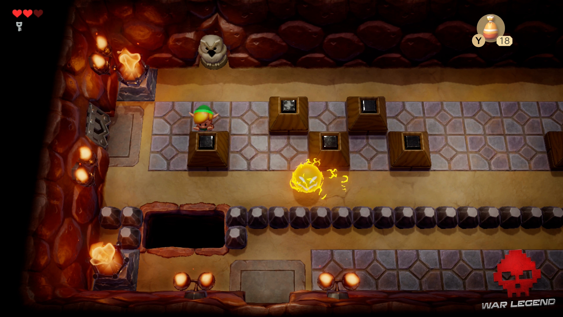 Une fois le chemin dégagé, continuez et déverouiller la porte du boss avec la clé. Si vous manquez de cœurs, descendez l’escalier pour en récupérer 3.