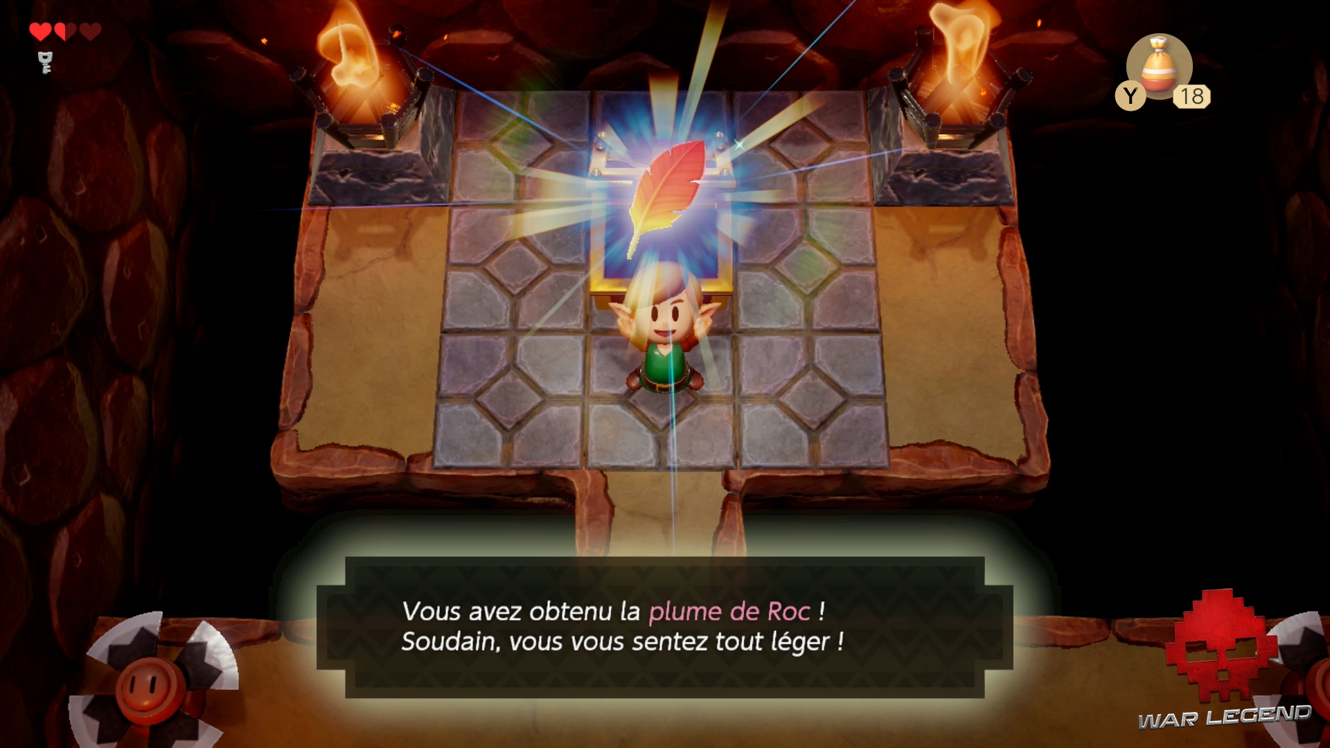 Avec la plume de Roc vous pouvez sautez par dessus les fossés et certaines attaques. C’est clairement l’objet que vous utiliserez le plus tout au long du jeu.
