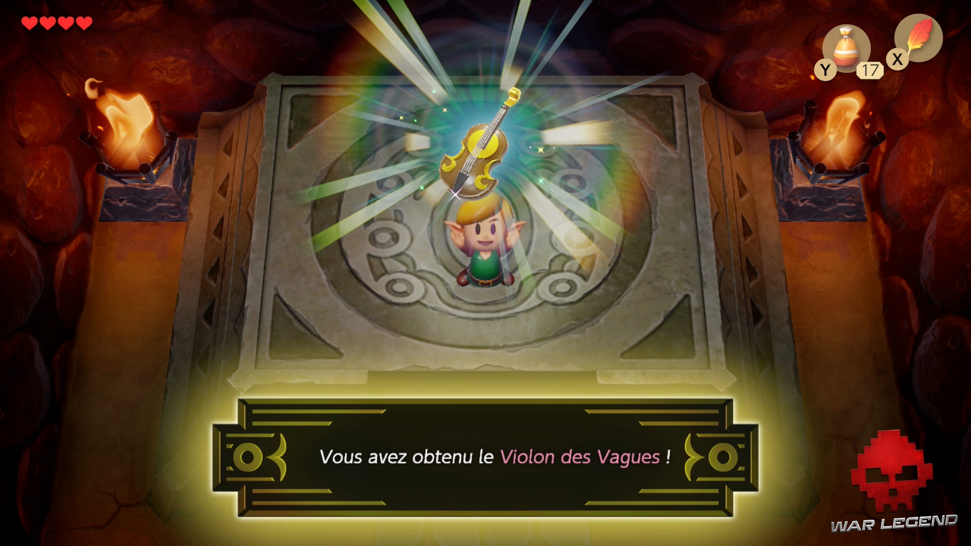 4 coups suffiront pour défaire le boss. Récupérez votre nouveau réceptacle de cœur et pénétrez dans la pièce suivante pour acquérir votre premier instrument de musique : le Violon des Vagues.