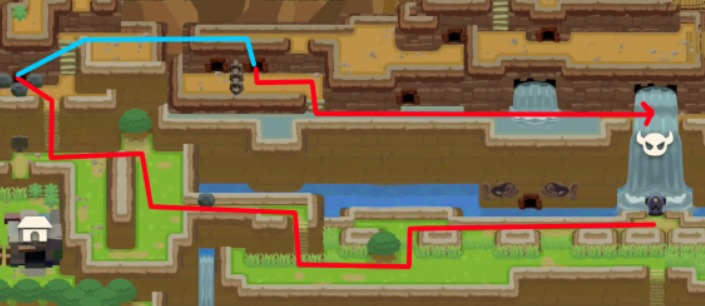 Dans la grotte de la montagne, utilisez une charge avec les bottes de Pégase pour éclater les obstacles et passer par la deuxième porte.