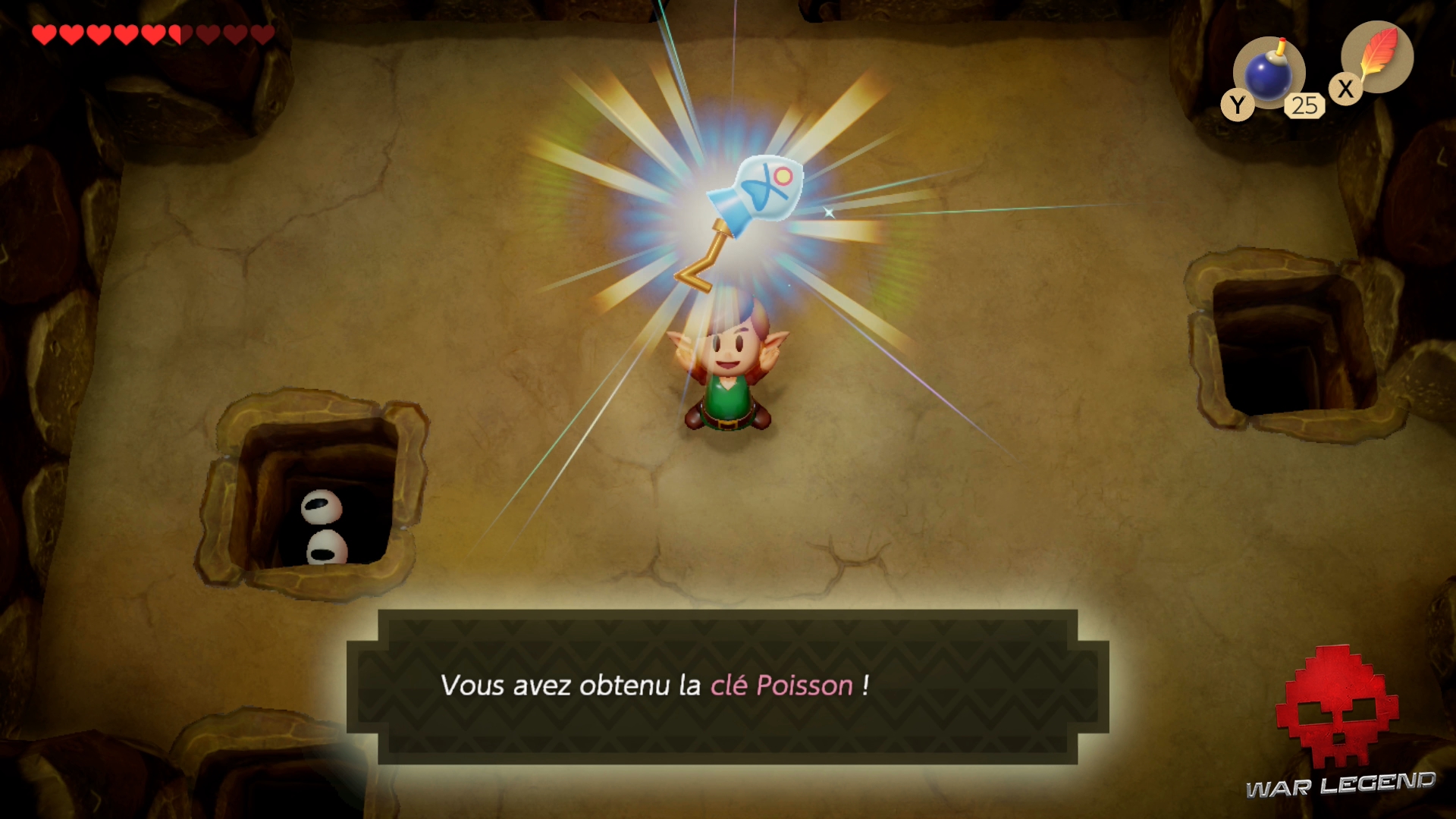 Une fois le monstre défait, la clé Poisson apparaît, mais tombe dans le trou. Suivez-la et récupérez-la.