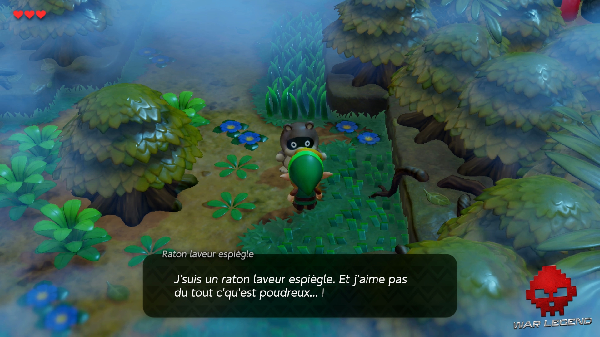 Puis, tombez sur l’arbre avec le drôle de raton-laveur. Il vous révèle qu’il déteste ce qui est « poudreux« .