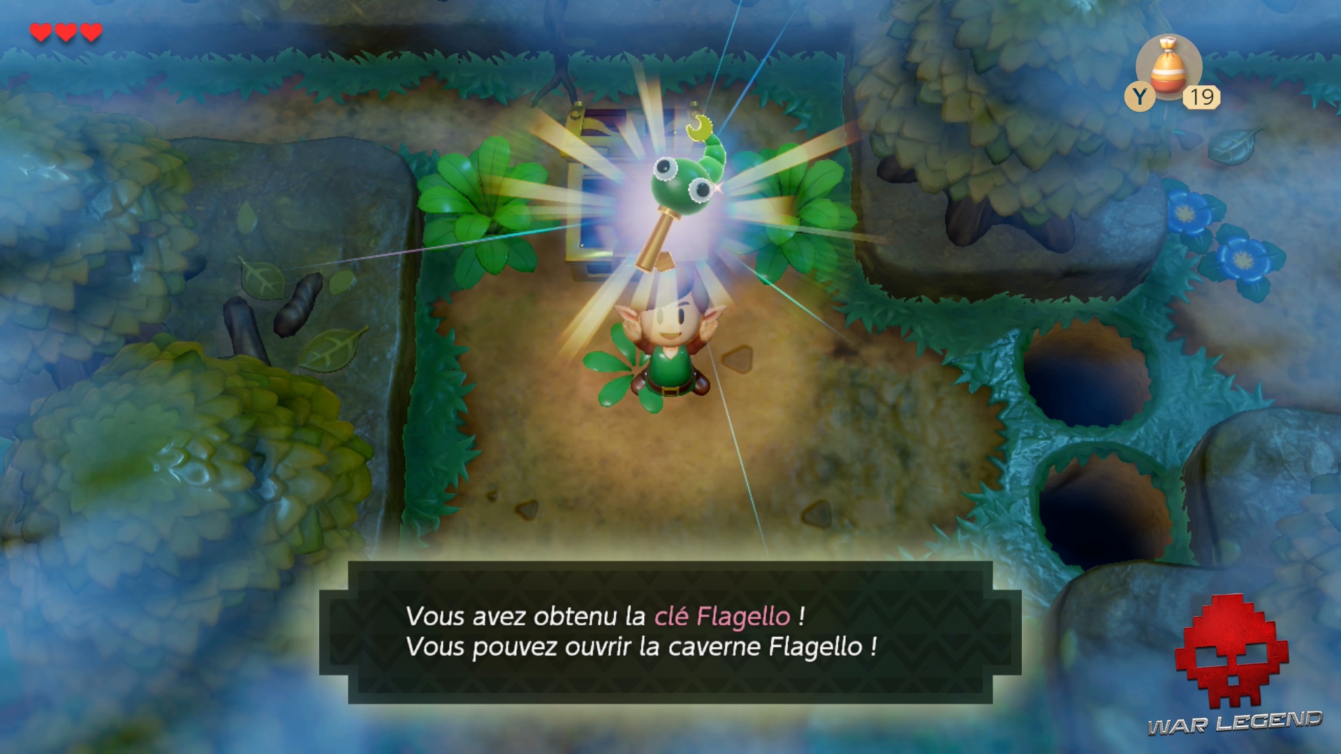Maintenant que le brouillard est dissipé, vous pouvez progresser vers le nord et tomber sur un coffre. Vous voilà avec la clé Flagello.