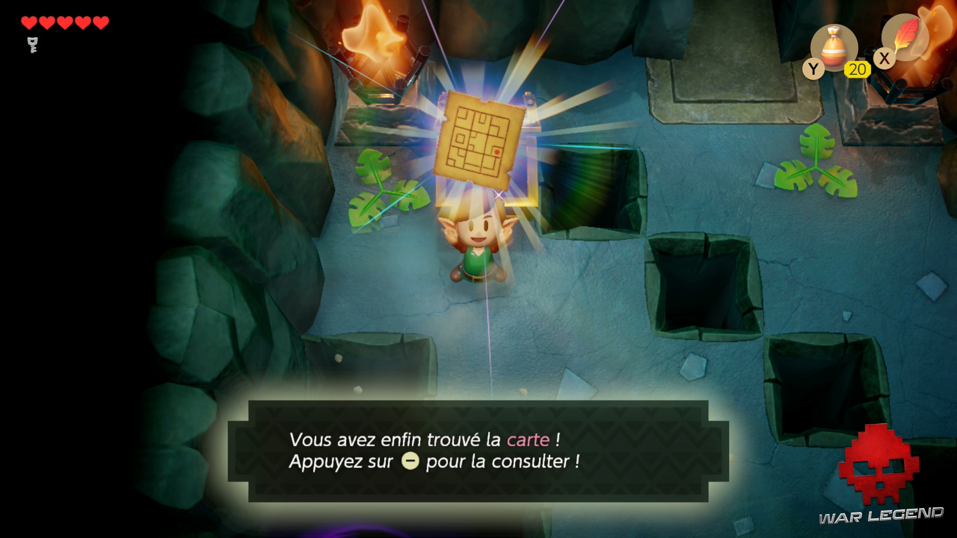 Pour récupérer le coffre, marchez dans le sens contraire au trou noir, sinon vous serez aspiré dans un gouffre. Quand l’attraction s’arrête, dépêchez-vous de récupérer le coffre en sautant directement devant. Voilà la carte du donjon.
