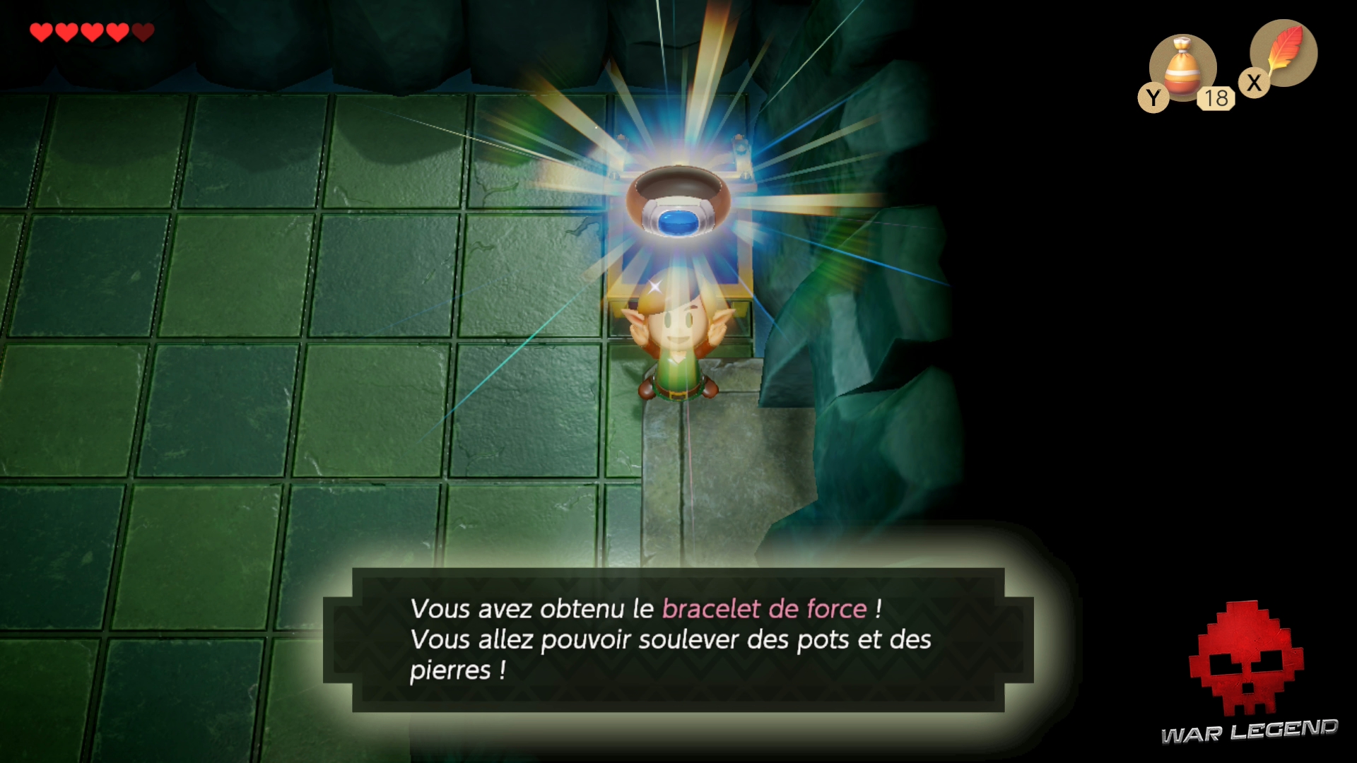 Le bracelet de force permet de soulever tous les objets qui étaient trop lourds pour Link jusqu’à présent : pots, plantes, rochers, gros crânes… vous devriez avoir bien plus de liberté pour progresser et explorer.