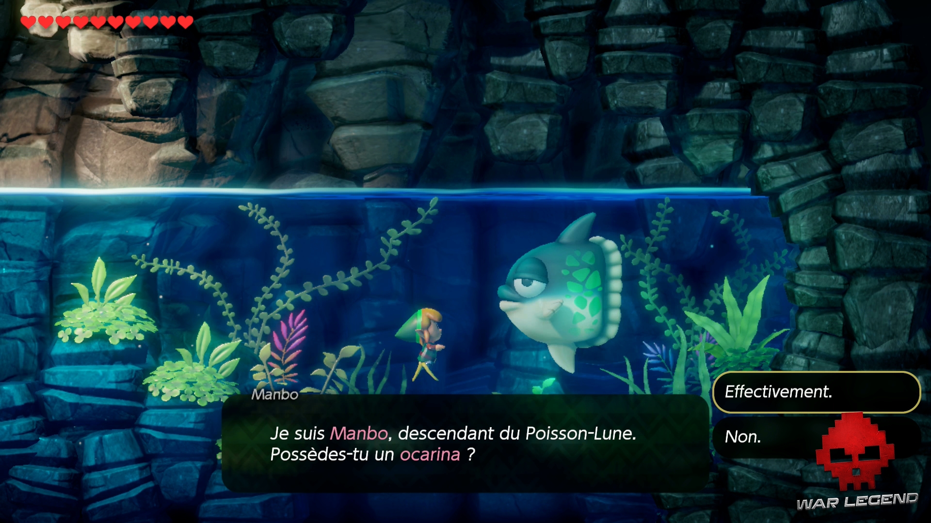 En sortant de l’Abîme du Poisson, sautez directement dans l’eau. Allez à gauche et rentrez dans la grotte immergée. Parlez au gros poisson, Manbo, pour apprendre le Mambo de Manbo. Cette chanson à l’ocarina vous permettra de vous téléporter n’importe où. Très pratique.
