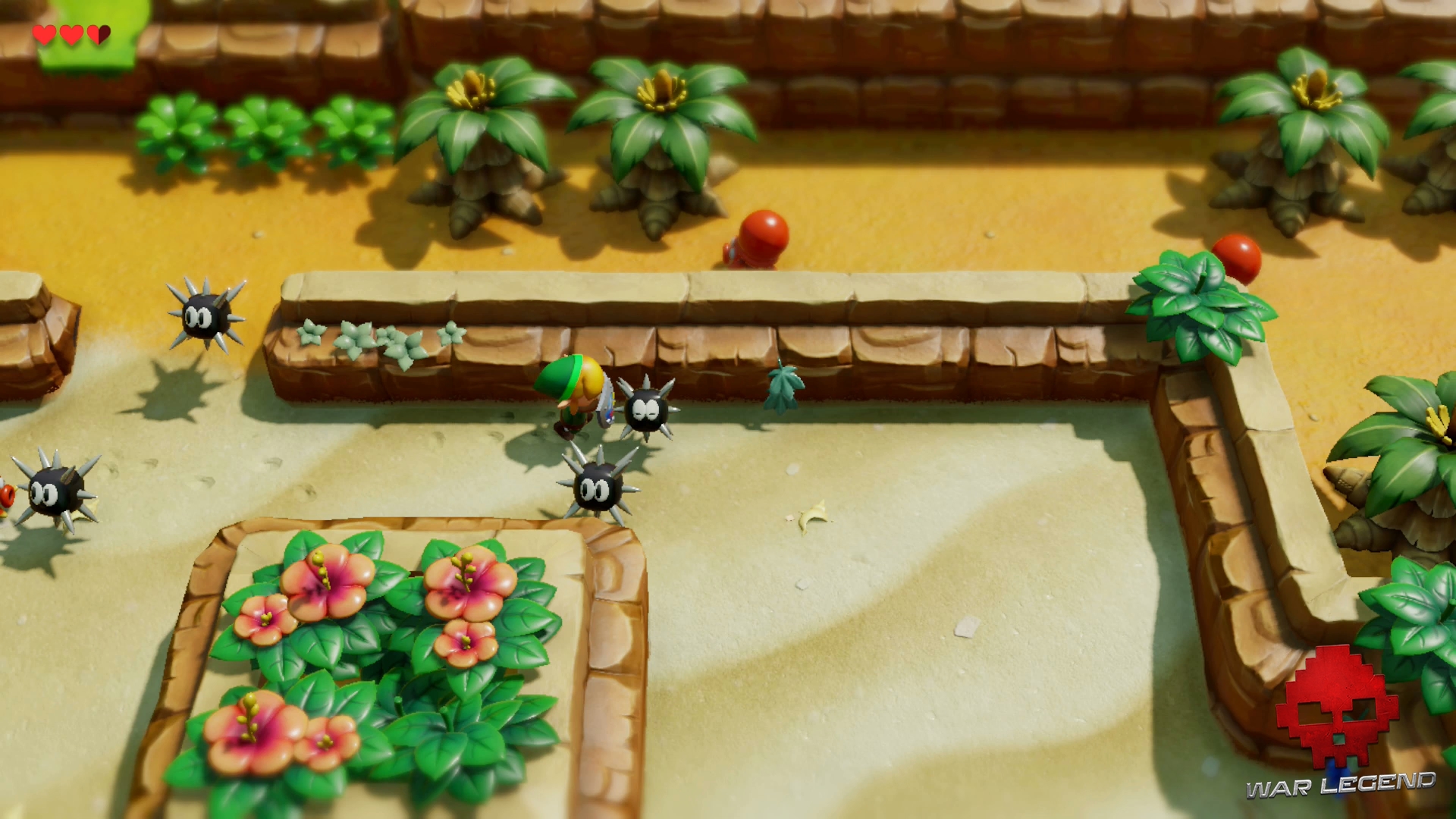 Pour passer les oursins, sortez votre bouclier avec ZL et poussez-les. Votre épée se trouve un peu plus bas.