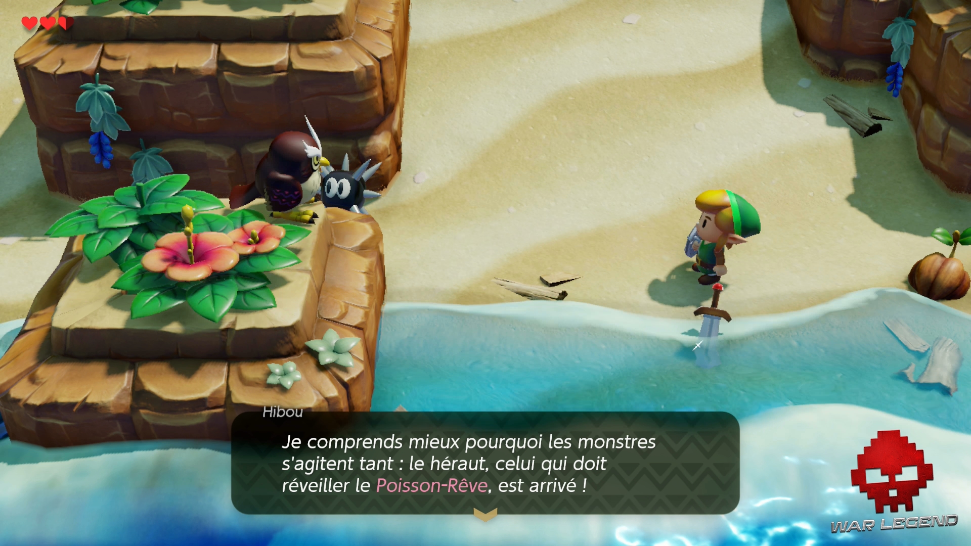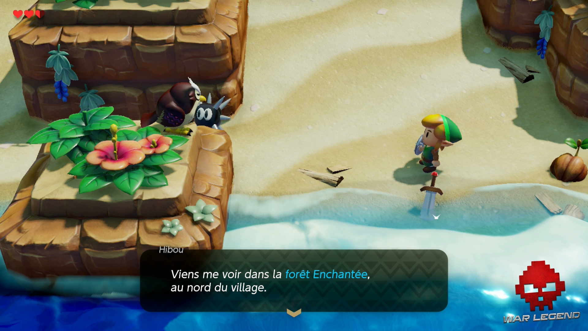 Au moment de récupérer l’épée, le Hibou vous interrompt et vous révèle que vous avez une mission à accomplir sur l’île avant de pouvoir la quitter. Évidémment, tout est une question de prophétie. Tellement cliché…