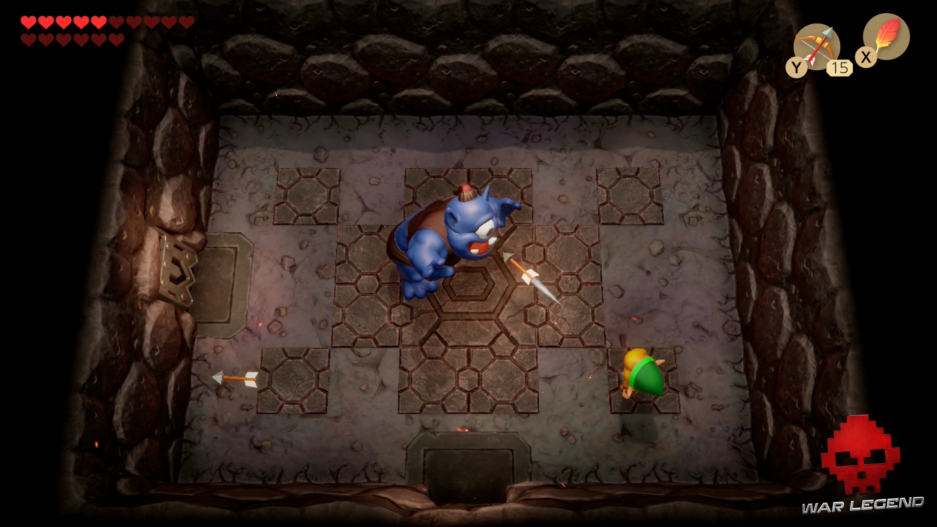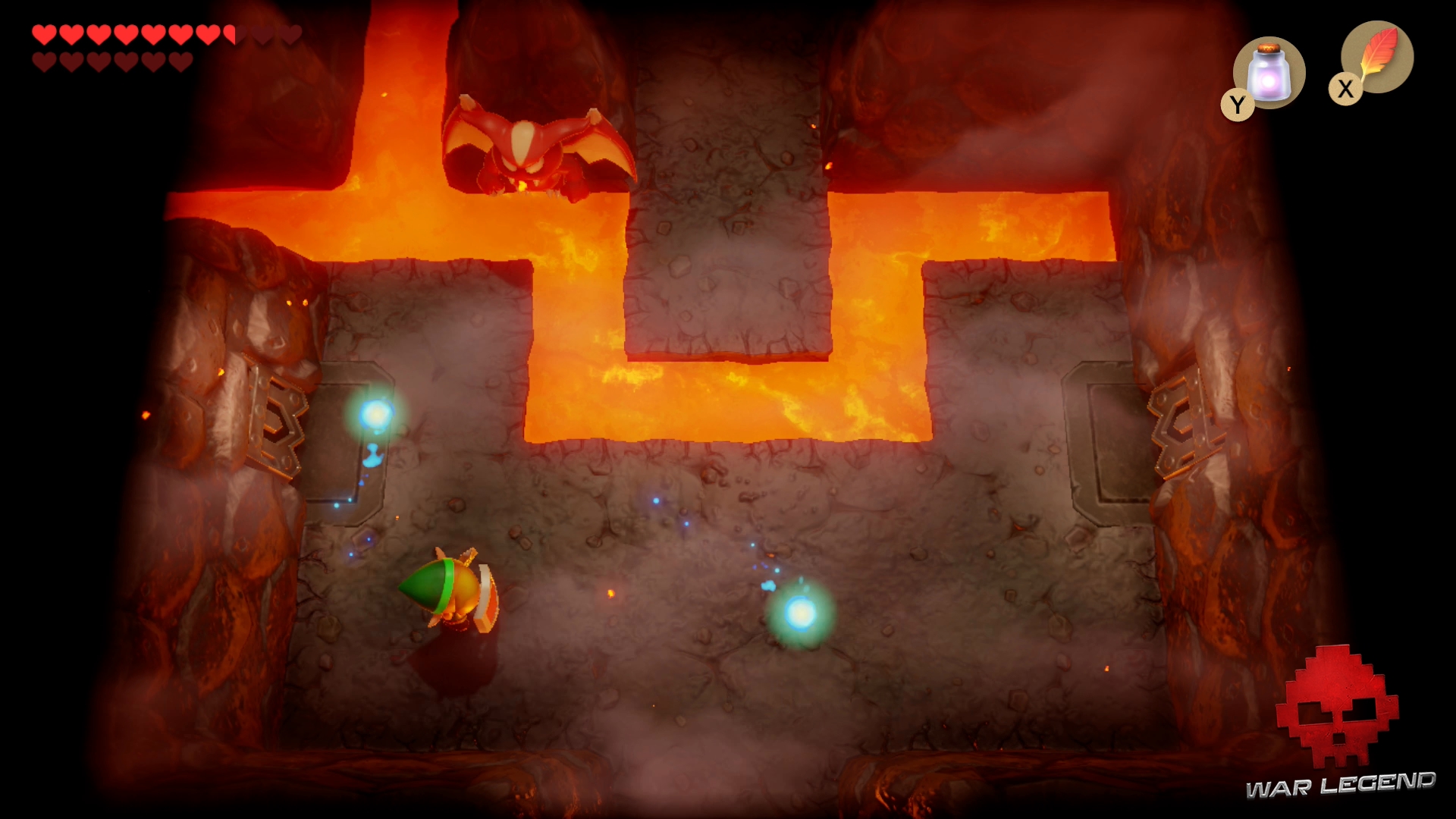 À peine arrivé dans le donjon, une grosse créature vous attaque. Utilisez votre bouclier-reflet pour renvoyer ses attaques et utilisez une attaque chargée à l’épée en sautant pour le toucher. Le diablotin aura tendance à esquiver les projectiles.