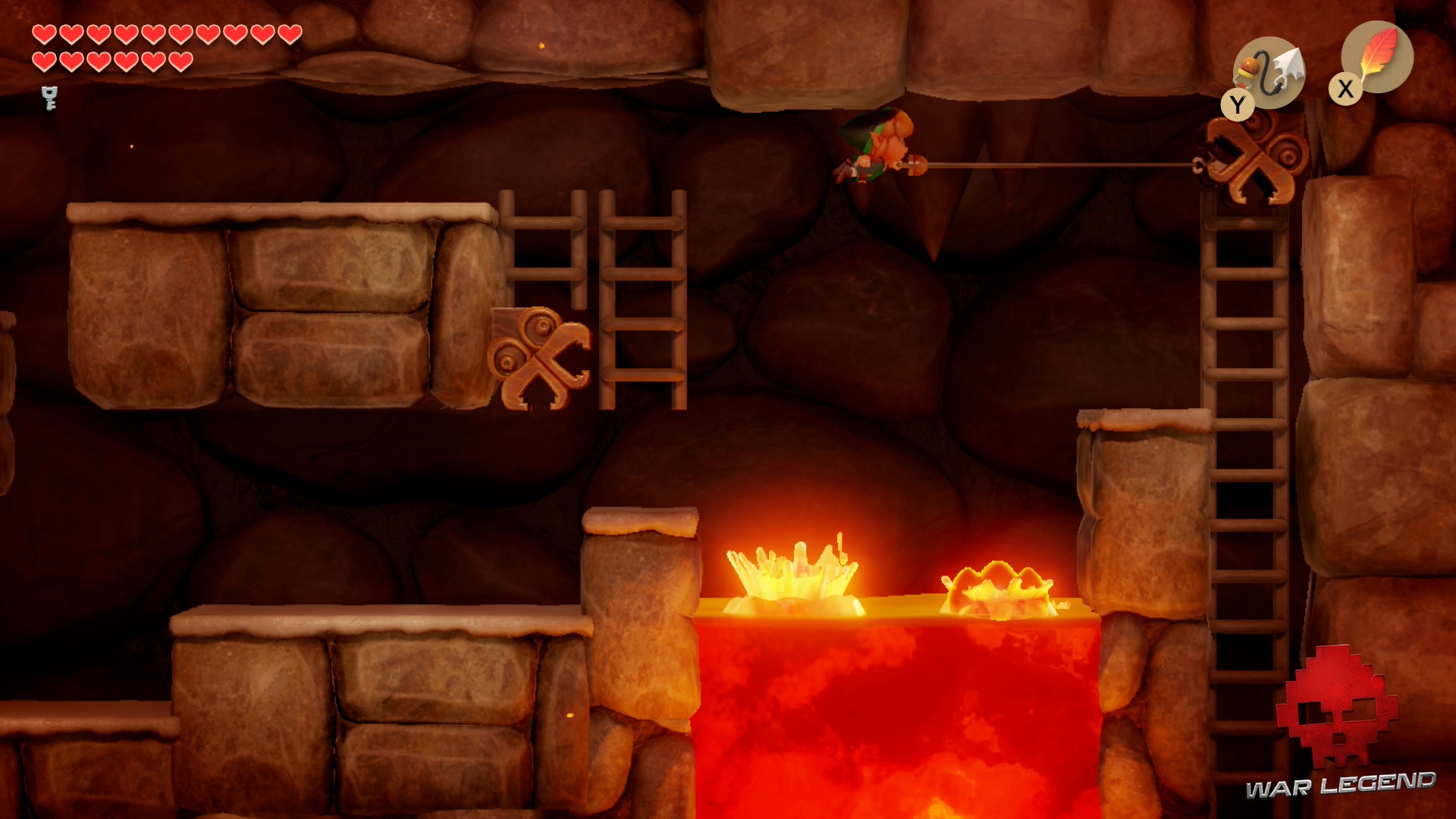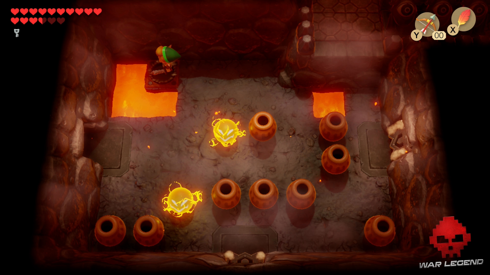 Traversez la lave et montez sur le piédestal en bas. Tirez une flèche sur la statue et récupérez une clé.