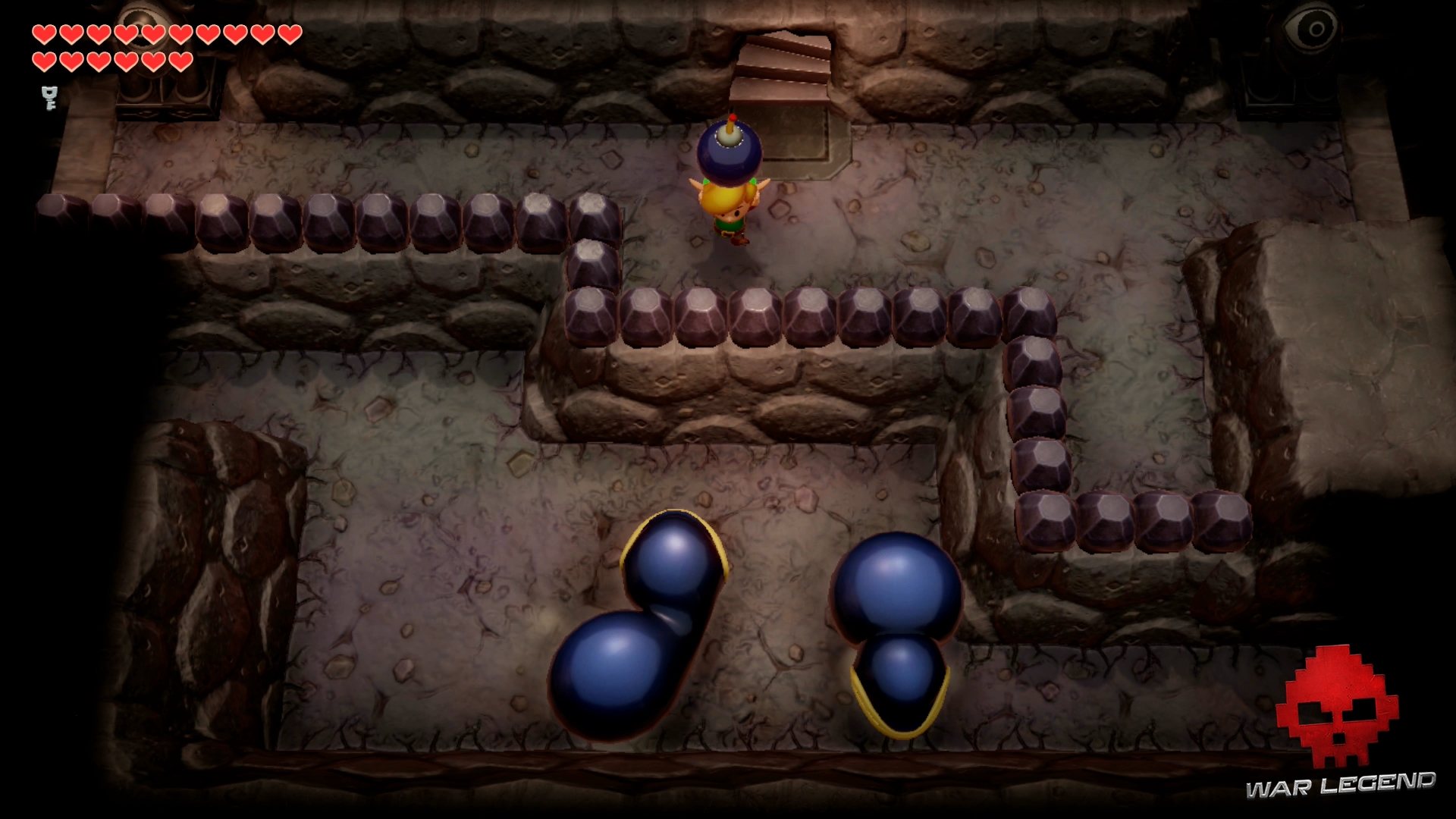 Vous voilà au-dessus des deux limaces cheloues. Balancez des bombes de sorte qu’elles les mangent. Un coffre apparaît et voilà une nouvelle clé.