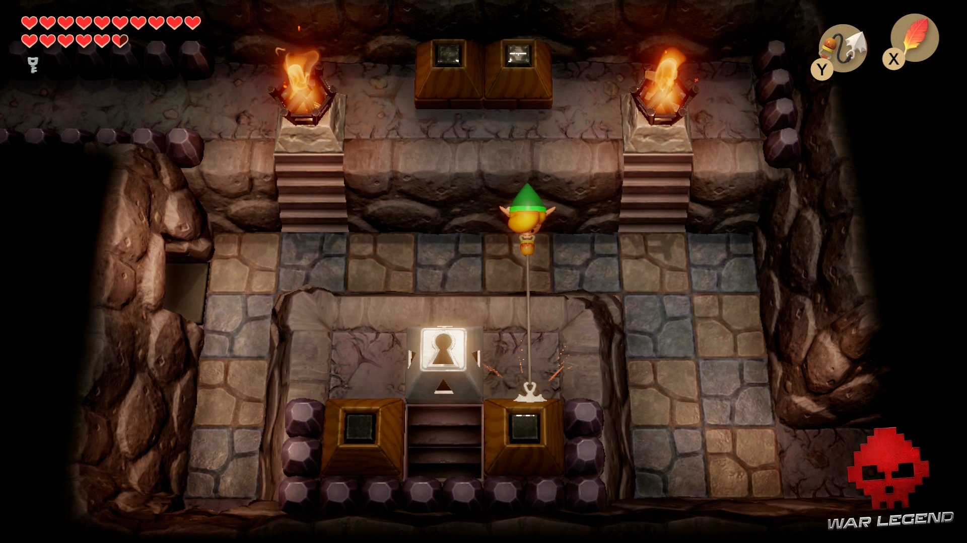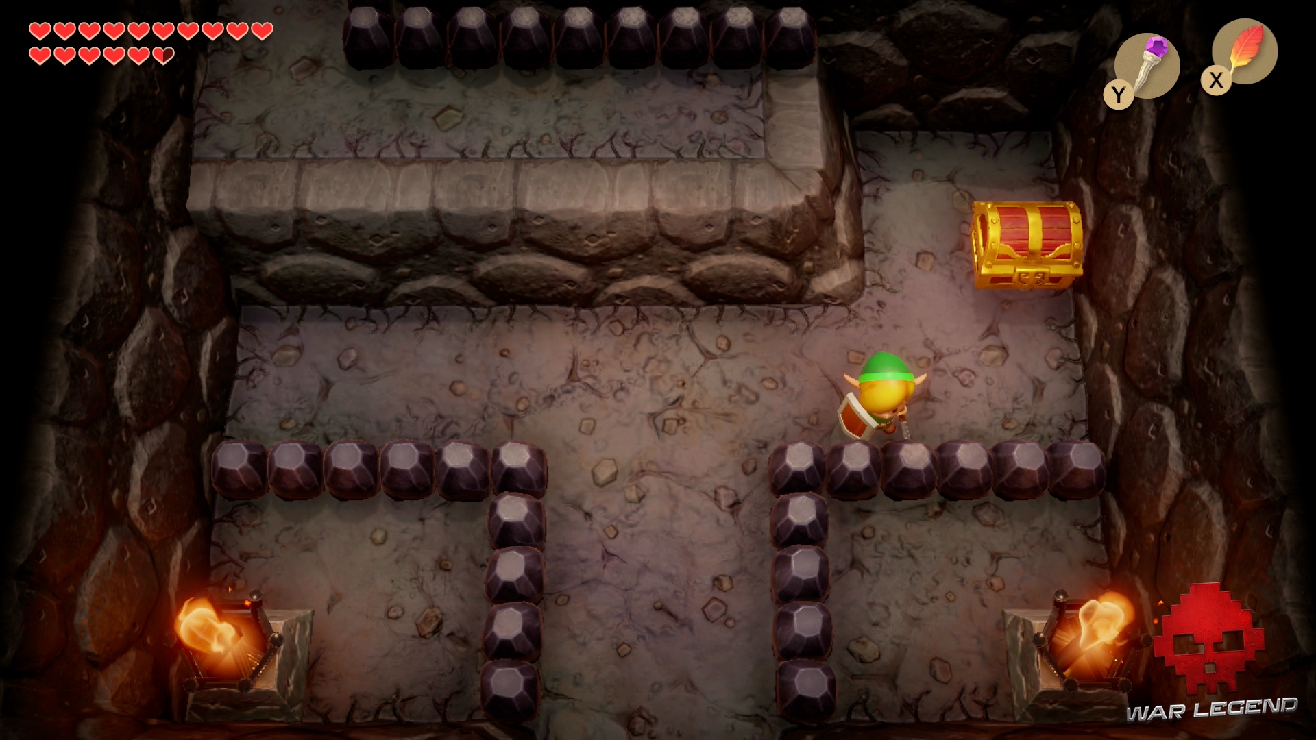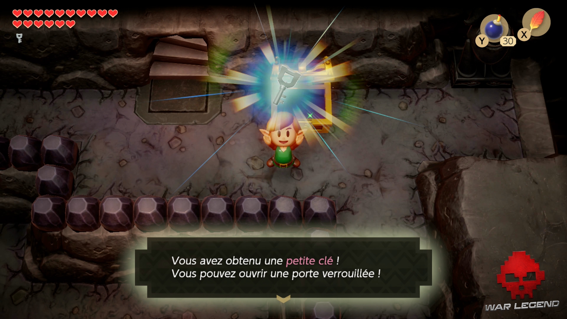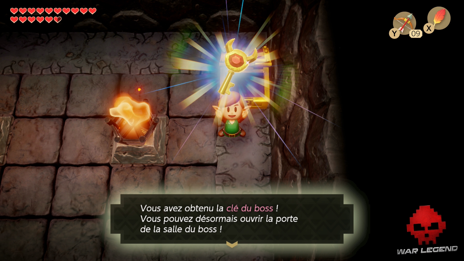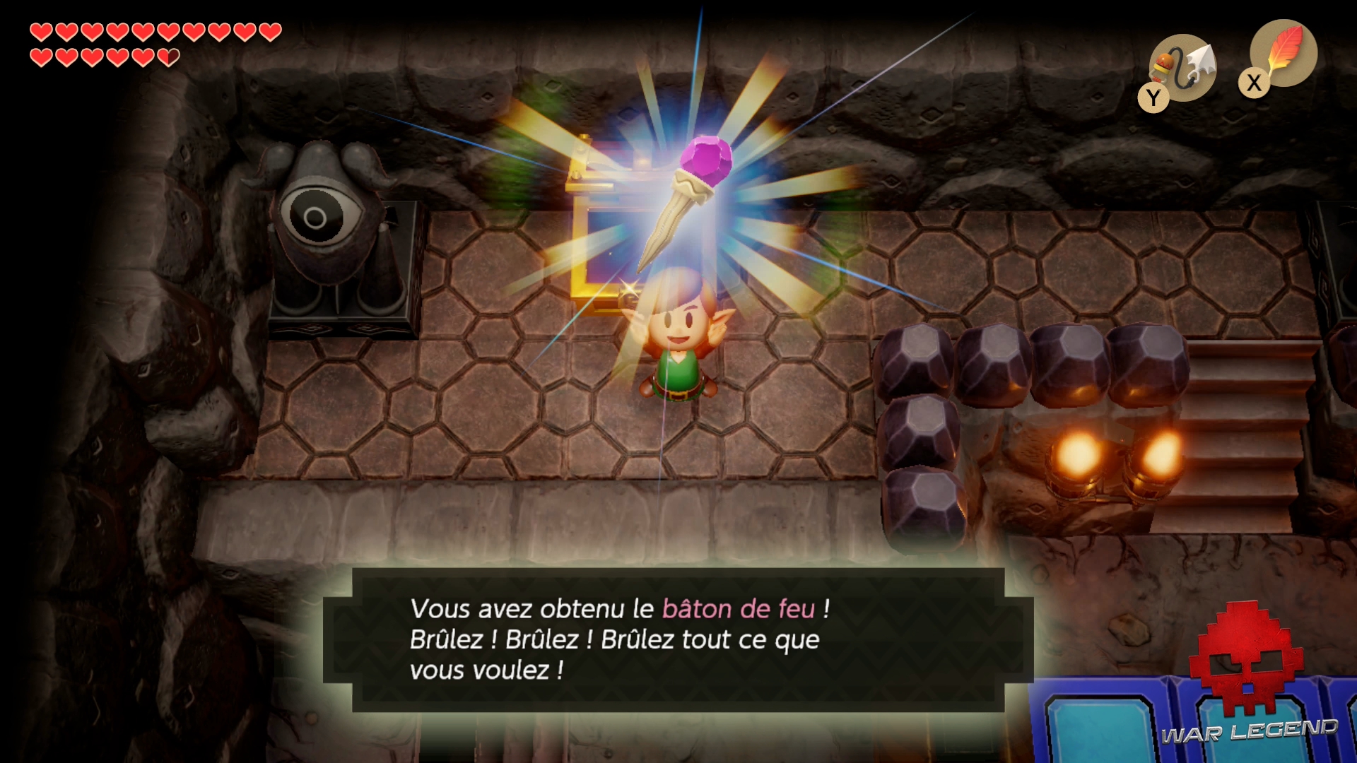 Revenez dans la salle du mini-boss et ouvrez le coffre (vu que le chemin est enfin libre). Voilà enfin l’objet du donjon : le bâton de feu.