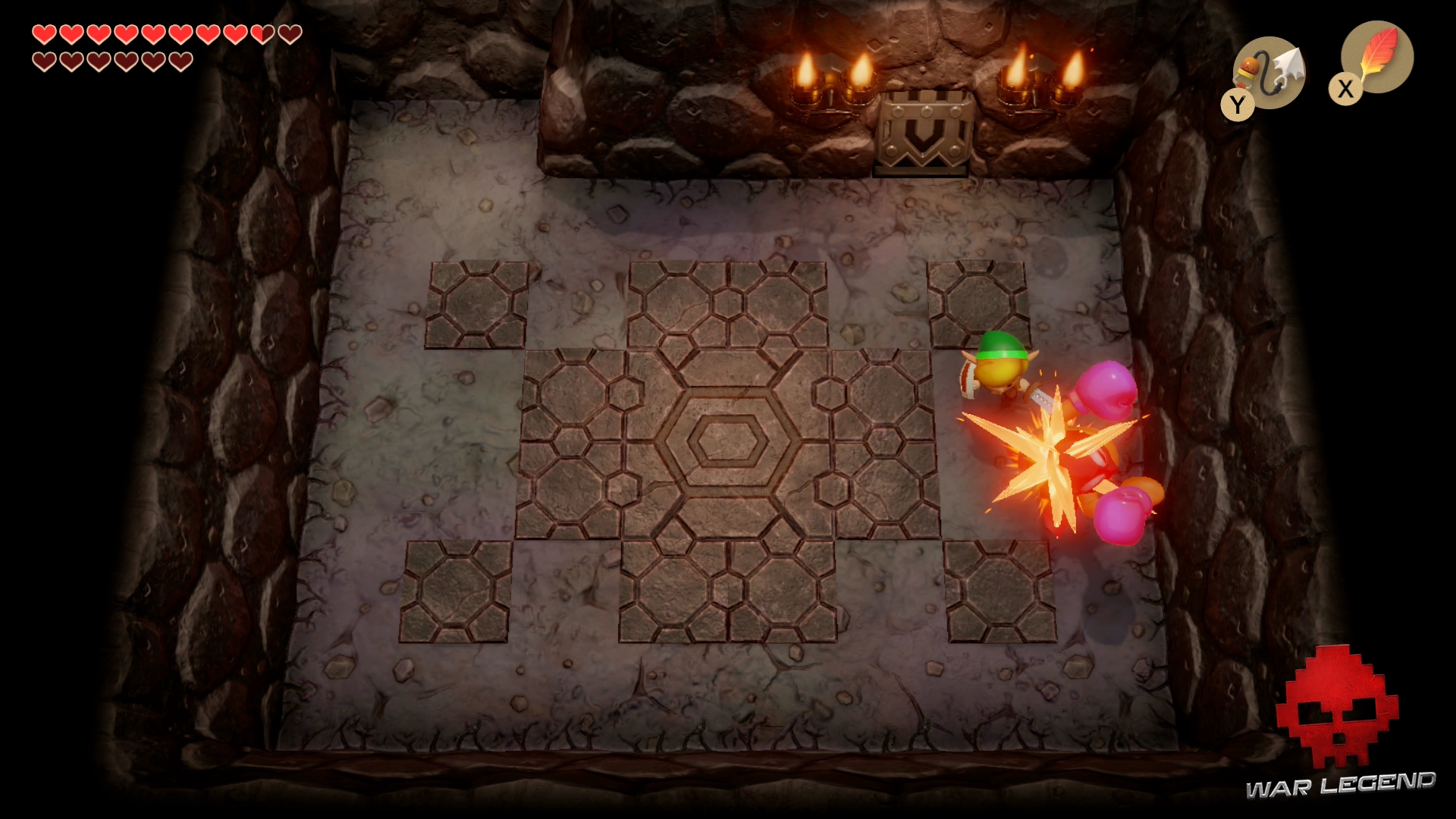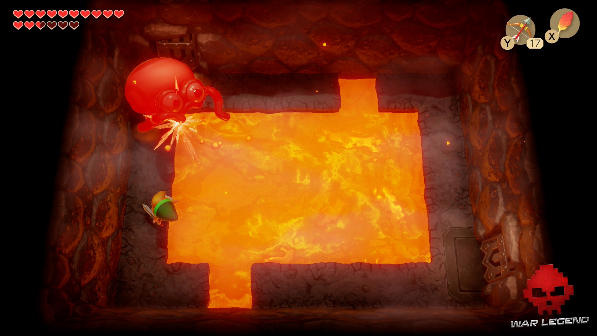 De l’autre côté, utilisez la clé sur la porte et affrontez encore un mini-boss. Esquivez ses charges et sautez par dessus si nécessaire. Tentez de toucher son abdomen avec l’arc si vous n’avez pas le temps de l’approcher.