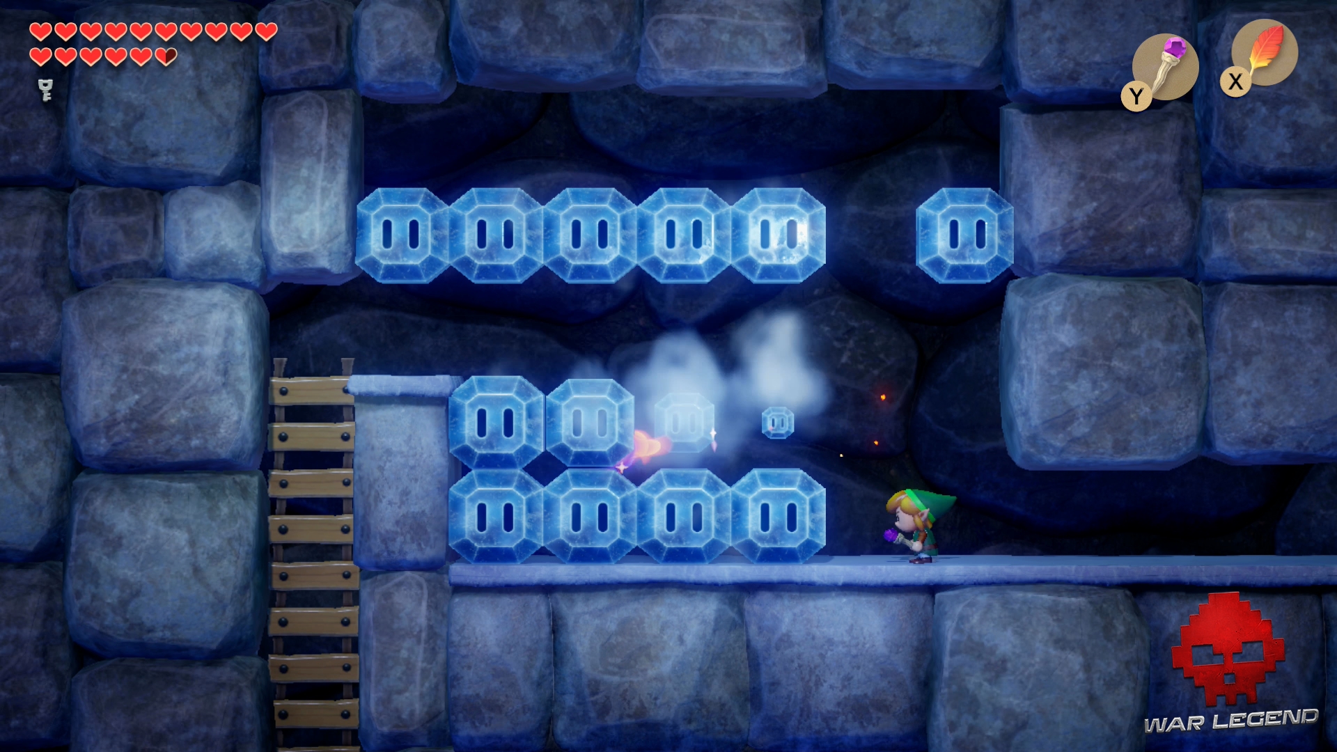 Montez les escaliers et utilisez le bâton de feu sur les blocs de glace. Sur le deuxième écran, sautez avec le bâton de feu pour faire fondre seulement la seconde ligne de blocs de glace.