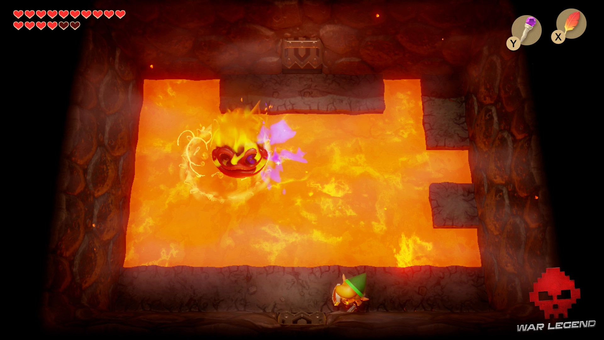 Paradoxalement, Coloflamme est un boss très simple pour un donjon aussi velu. Sortez votre bâton de feu et arrosez-le avec. Restez bien au centre de la plateforme pour éviter son unique attaque. Seul le bâton peut le blesser. Bourrez-le jusqu’à ce qu’il meurt.