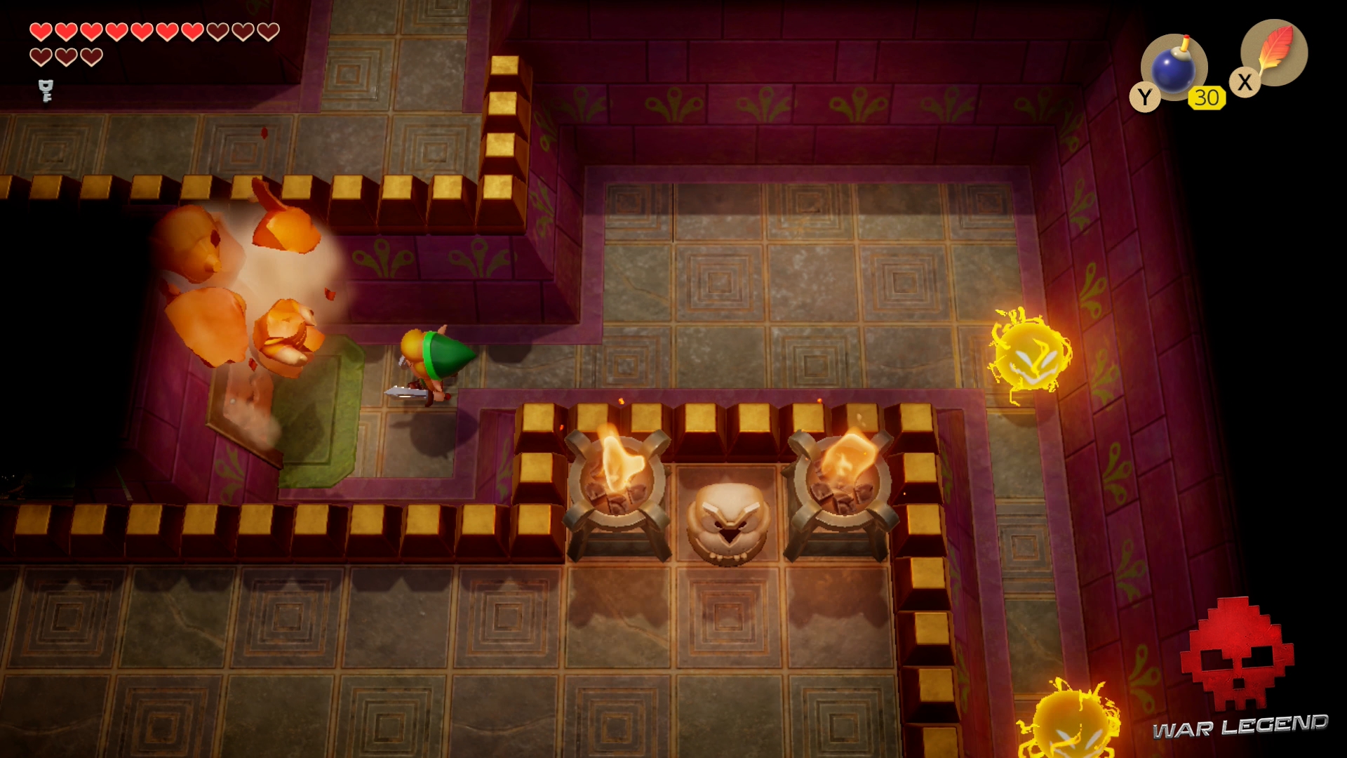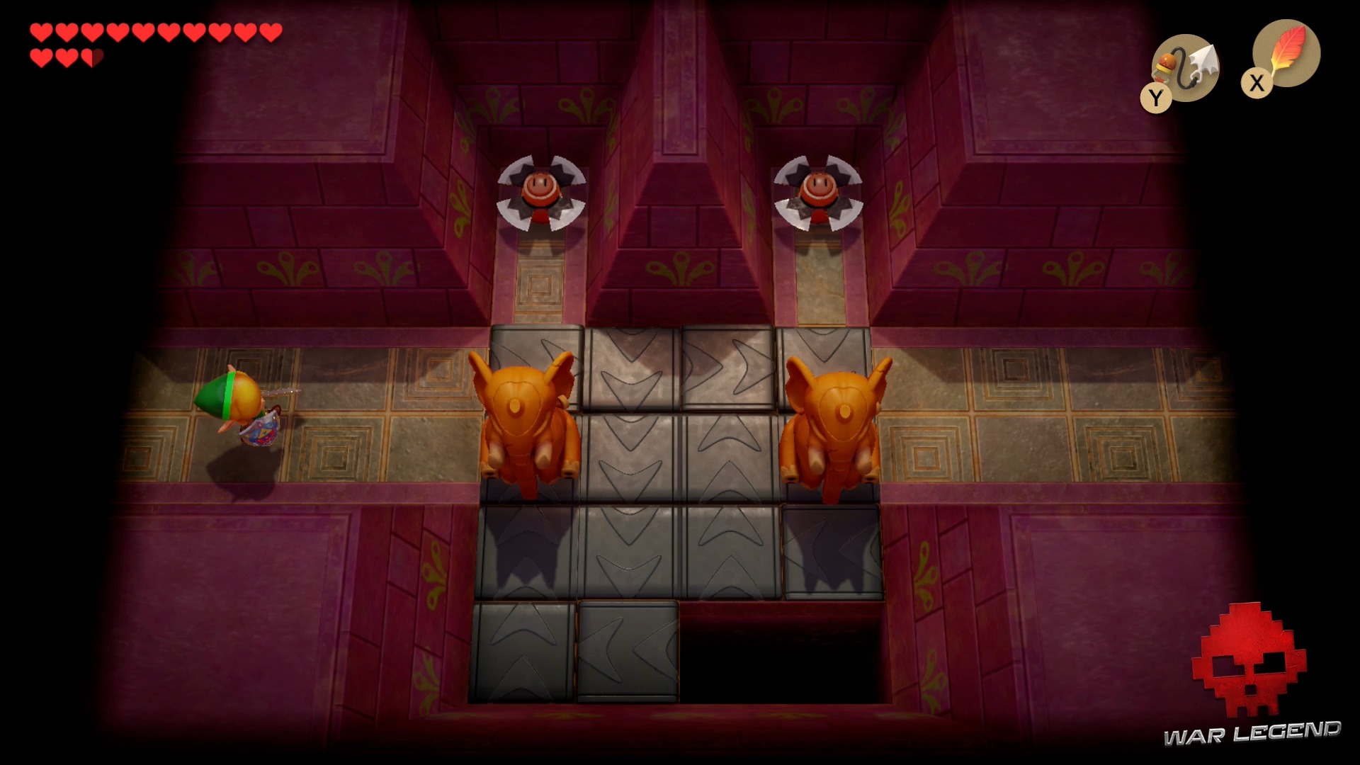 Dans la salle suivante, faites face à de nouvelles dalles tueuses. Pouvez passer avec votre clé pour éviter de prendre des dégâts, mais restez jusqu’au bout. Une autre petite clé vous attend.