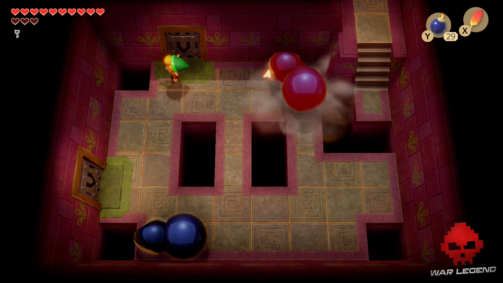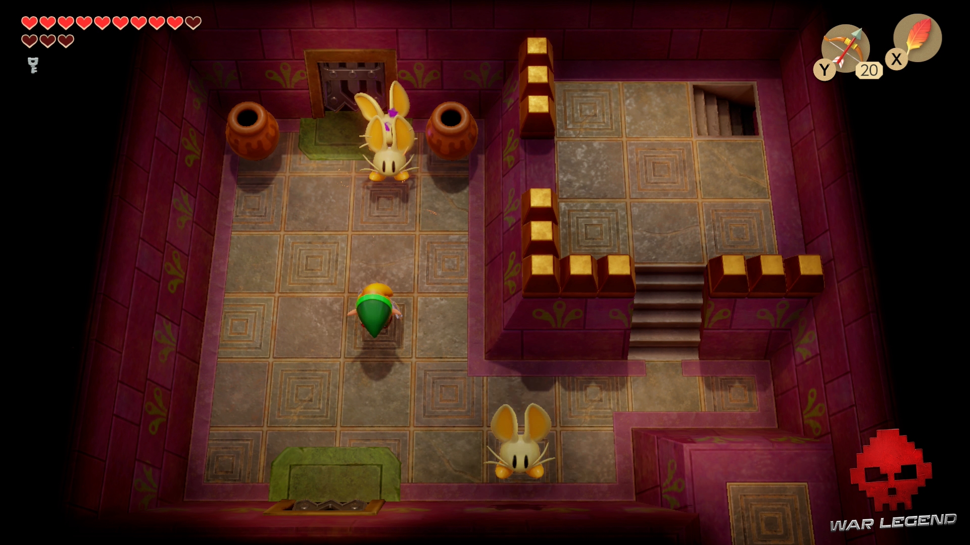 De l’autre côté, tuez les lapins facilement avec votre arc. Si vous prenez la porte du haut, vous pouvez récupérer 300 rubis deux pièces plus loin. Pour continuer le donjon, prenez la porte du bas.