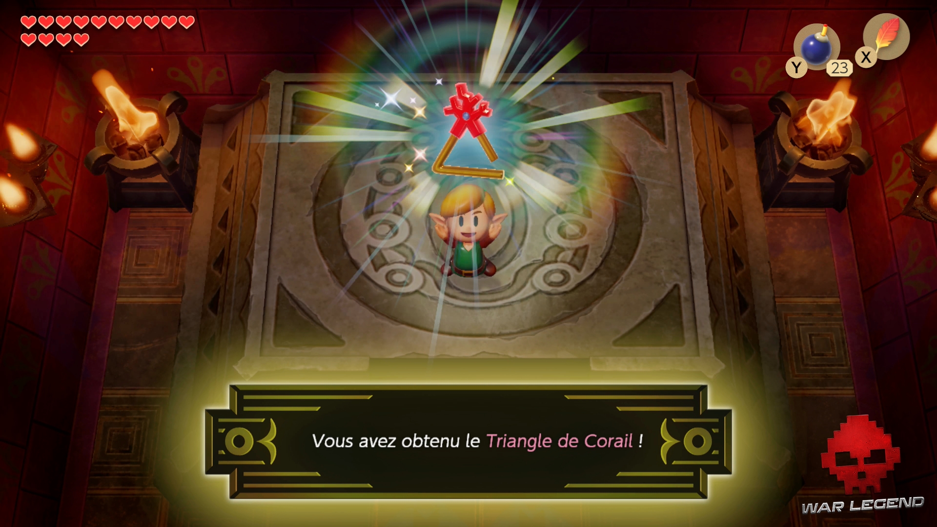 Une fois le boss défait, récupérez le 6e instrument : le triangle de Corail. Accessoirement, n’oubliez pas votre nouveau réceptacle de cœur.