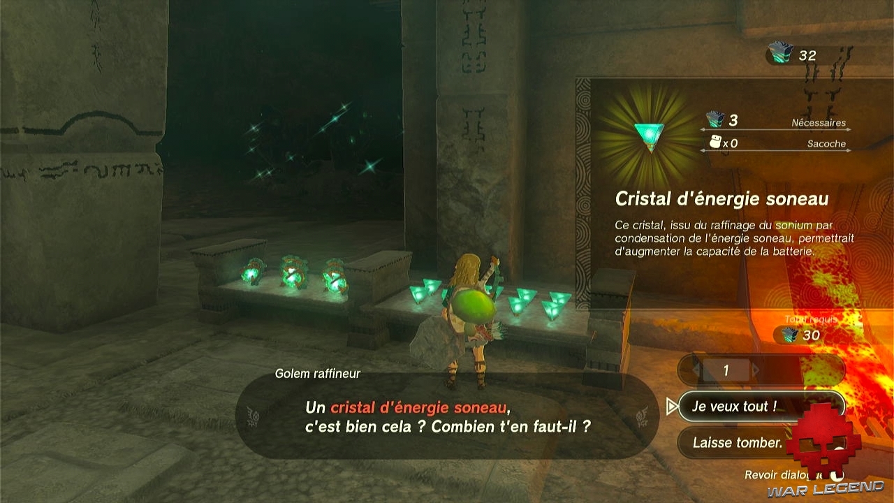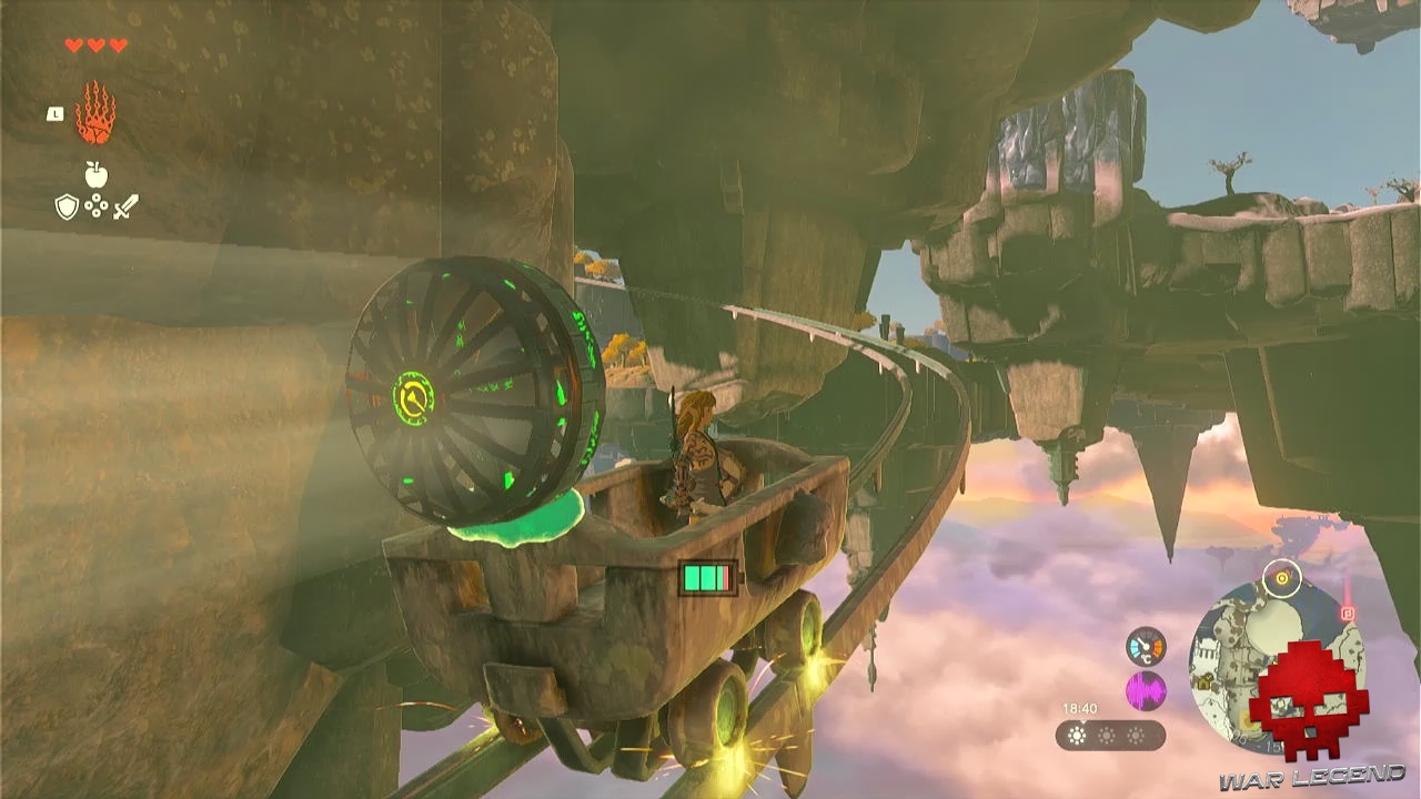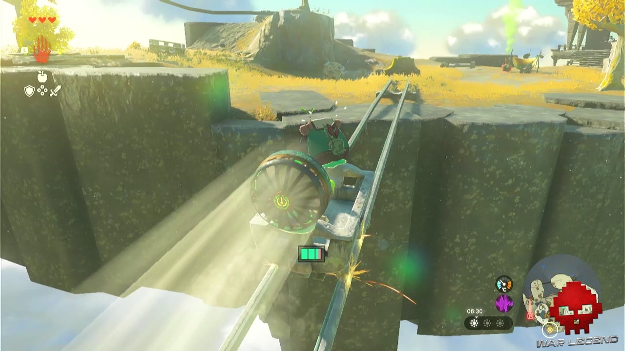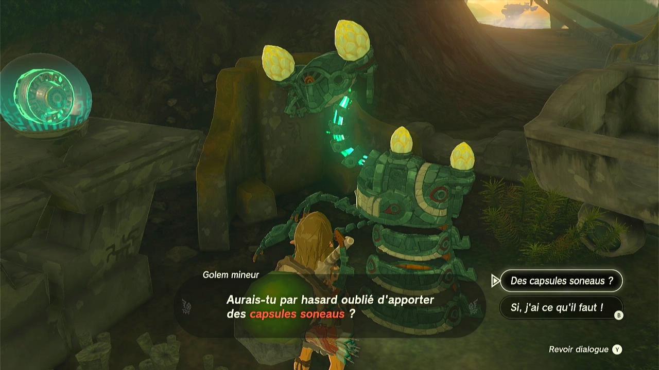 En sortant du Sanctuaire In Isa, un golem assistant vient vous voir afin de vous remettre une batterie portative. Elle vous permettra d’utiliser les artéfacts Soneau, représentant une autre mécanique fondamentale de Tears of the Kingdom.