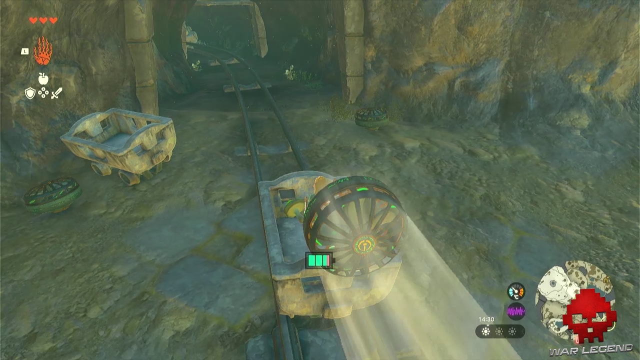 En chemin, vous tombez sur de nouveaux filons de minerai, contenant cette fois du Sonium, un élément rare que l’on retrouve uniquement dans les profondeurs d’Hyrule.