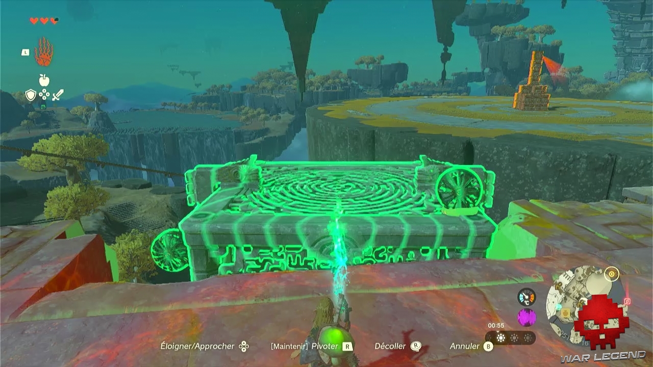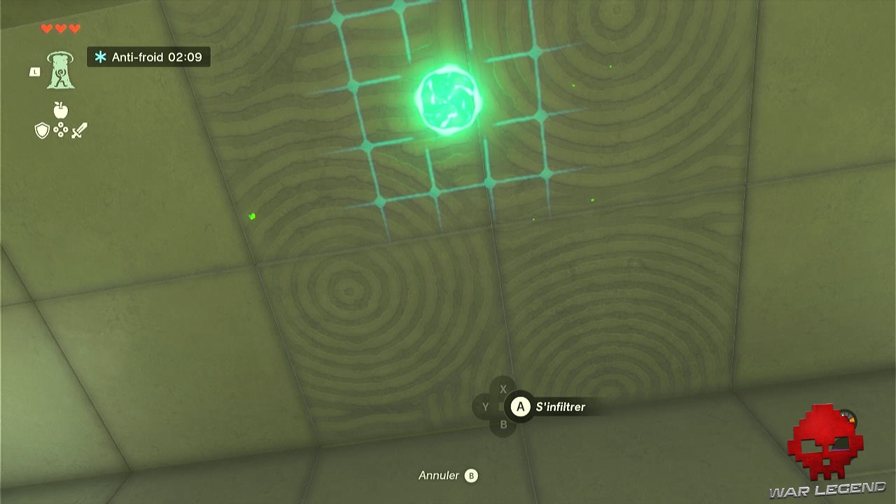 Seulement, il y a quand des restrictions : il faut que la surface visée soit relativement plane, qu’elle ne soit pas trop haute et que Link a les pieds cloués au sol. Assurez-vous que la cible soit verte avant de confirmer l’Infiltration avec A.