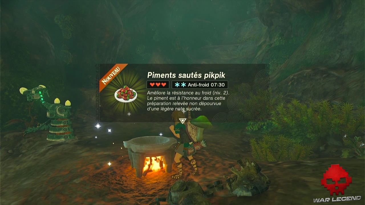 Le golem assistant que vous croisez à l’intérieur vous explique l’utilité des Piments pikpik : faites-en cuisiner 5 pour obtenir un plat de Piments sautés pikpik. Il vous permettra d’affronter le climat glacial qui vous attend, durant 7m30.