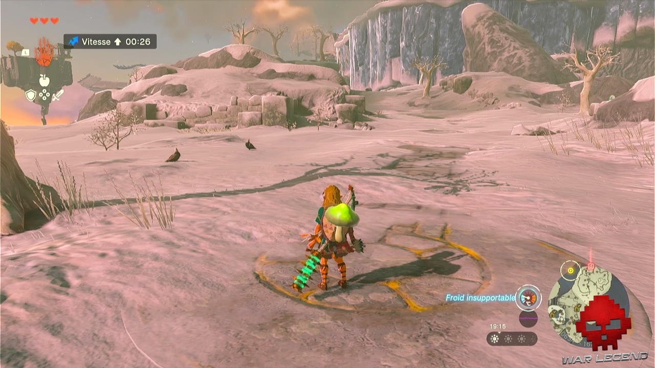 La sortie est là. Étant donné que la température était bien meilleure dans la grotte, assurez-vous que votre bonus anti-froid est toujours actif, sinon il faut de nouveau cuisiner des Piments pikpik.