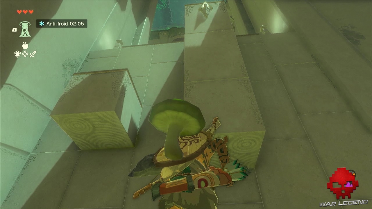 Repartez en arrière, et explorez la zone. Attention aux chuchus de glace, mais un fruit de feu permet de les vaincre en un coup.