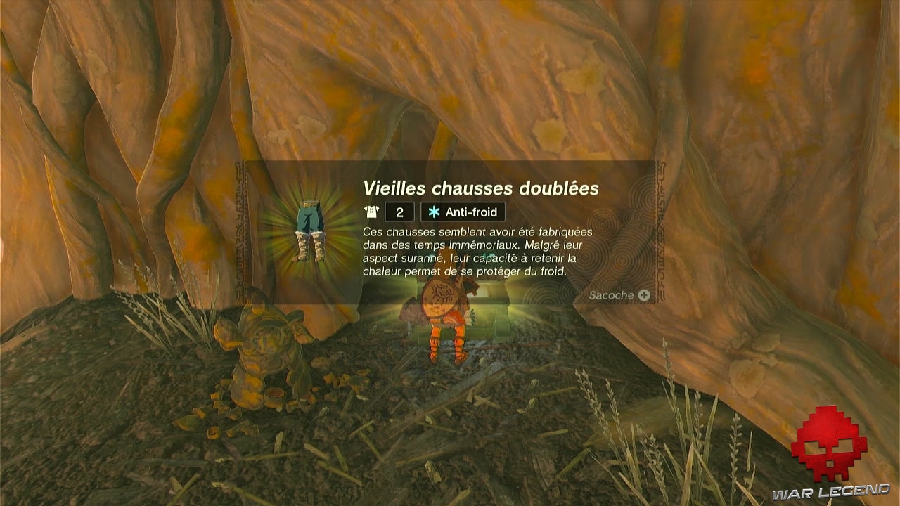Dans la cavité de l’arbre, vous pourrez récupérer de Vieilles chausses doublées, contenues dans un coffre.
